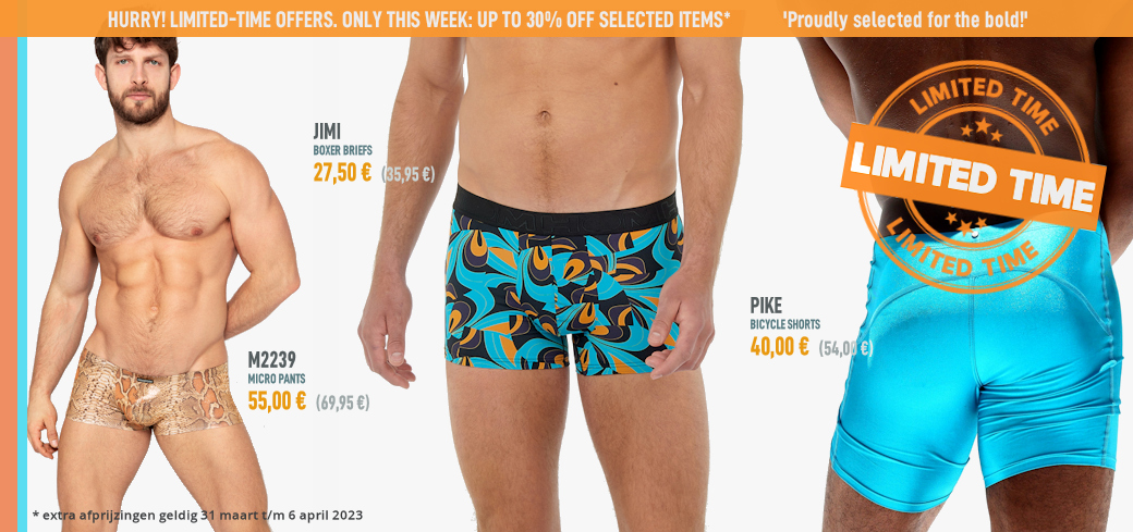 Daarom zijn wij in 2007 ons online avontuur gestart, met als doel: het creëren van een leuke en mooie plek waar iedereen zich prettig voelt en met plezier kan shoppen voor heren ondergoed en zwemkleding uit de veelzijdige collecties van internationale topmerken. Exclusieve collecties welteverstaan want ons streven is om items te selecteren die niet op iedere straathoek te vinden zijn. Oké, je moet een beetje lef hebben, nieuwsgierig zijn en misschien uit je comfort zone komen, want onze onderbroeken en zwembroeken zijn allesbehalve saai! Om jou te inspireren verschillende designs en trends uit te proberen kun je bij ons kiezen uit meerdere stijlen, passend bij iedere gelegenheid. Met meer dan duizend toonaangevende boxershorts, herenslips, herenstrings, jockstraps en zwembroeken zijn wij ervan overtuigd dat je bij ons kunt slagen.