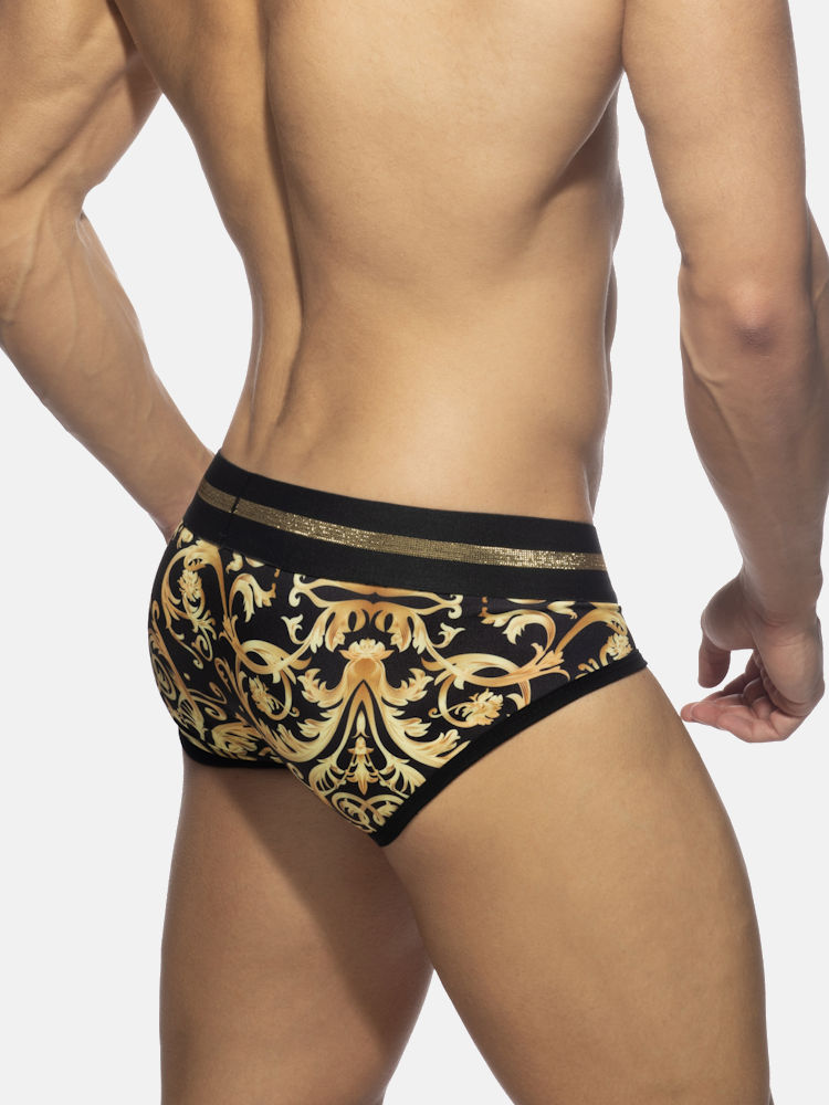 Addicted AD1044 Versailles Golden Brief slip van zwarte stretch met goudkleurige print