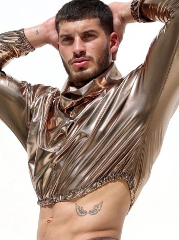 Neem het leven niet al te serieus en maak er een feestje van met deze Addicted AD1170 Gold & Silver Croptop Gold. Een croptop hoodie van goudkleurige stretch waarmee ieder feestje fantastisch wordt!