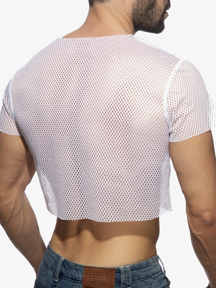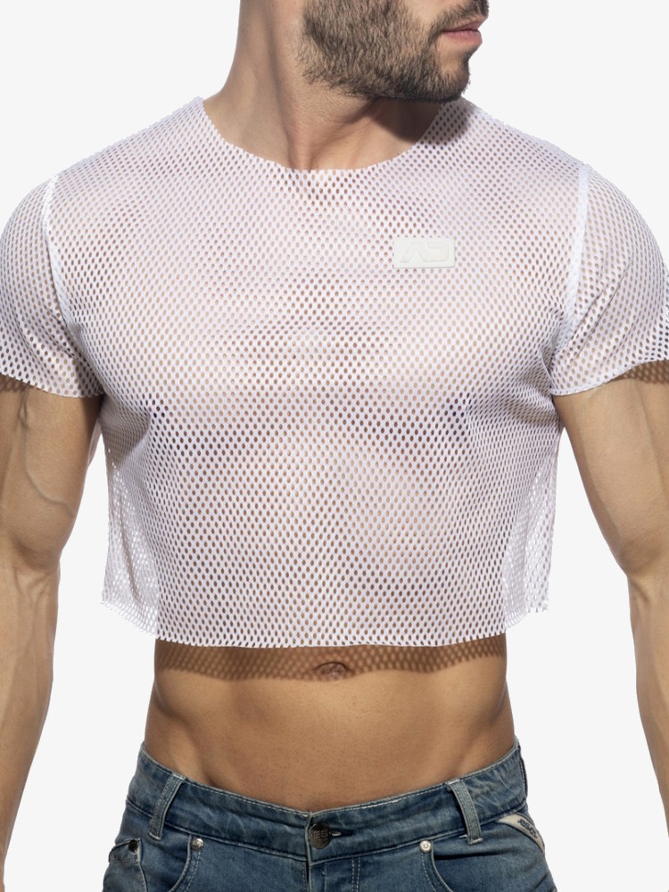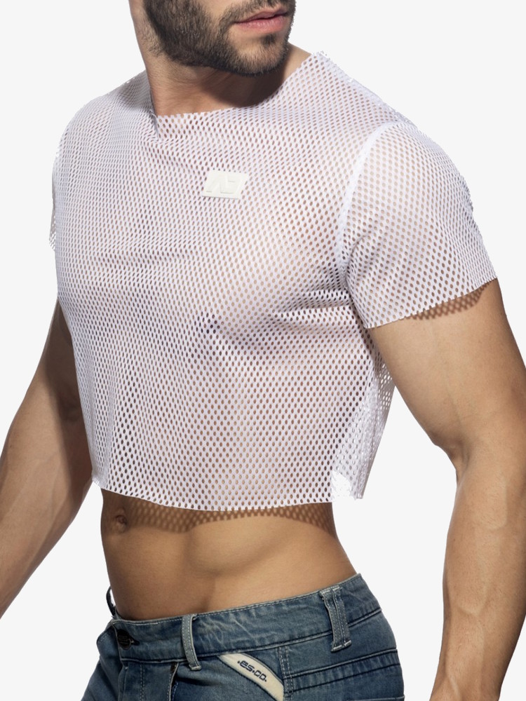 Addicted AD1189 Mesh Crop Top extra kort shirt van witte mesh