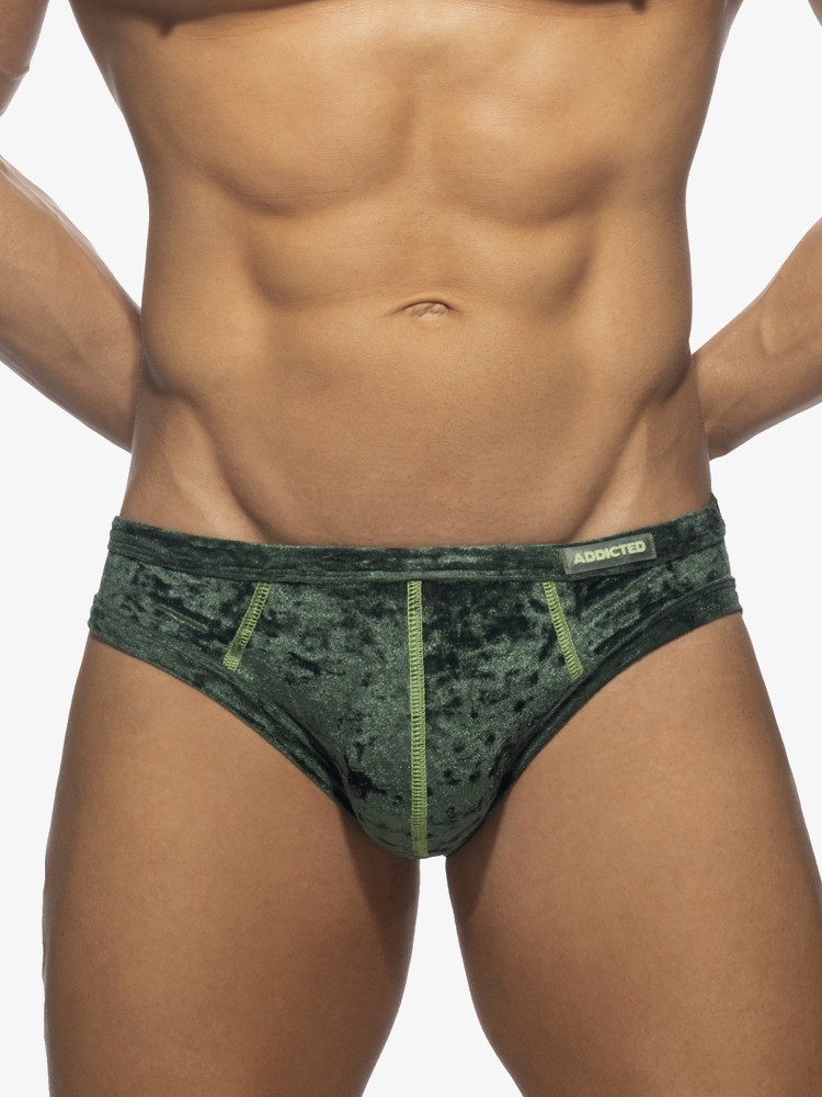 Zacht om te zien en zacht om te voelen. De Addicted AD1208 Velvet Shady Bikini Brief Green is een comfortabele heupslip met hoge aaibaarheidsfactor. Vanwege de fluweelzachte structuur krijgt deze groene Addicted slip bij iedere aanraking een andere look. Verander jezelf in een stoere, knuffelbare vent met deze coole groene Addicted onderbroek.