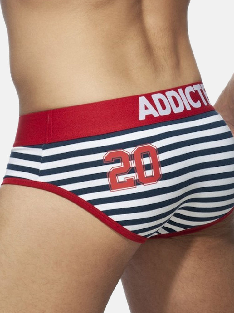 Al jaren een van de bestsellers uit collectie van Addicted underwear; de Addicted AD141 Sailor Brief Red! Een coole katoenen onderbroek met nautisch streepdessin.