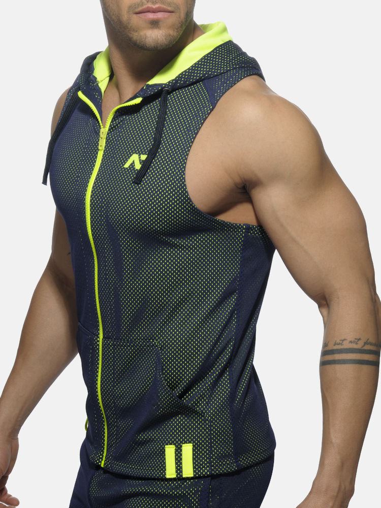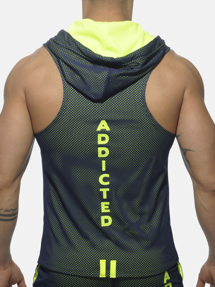 Dit mouwloze shirt met capuchon is slank gesneden en benadrukt de vormen van het lichaam. De hoodie is gemaakt van een grove mesh-kwaliteit met neon gele voering en Addicted logo aan achterzijde. Addicted creëert met dit dubbellaags sport shirt de perfecte combinatie tussen sportiviteit en comfort. Ervaar het draaggenot en het coole gevoel van het zachte materiaal op je huid tijdens het dragen.