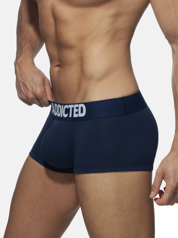 Een voordelige serie basis boxers, bestaande uit verschillende kleuren. Gemaakt van een zachte, katoen-stretch kwaliteit die garant staat voor comfort en draagplezier. De voorgevormde voorkant biedt ruimte, goede ondersteuning en een natuurlijk liftend effect. De boxershort is uitgevoerd in marineblauw met brede elastische tailleband met logo. Met deze strakke boxershort van ADDICTED Underwear creëer je de perfecte basis voor een geslaagde en sportieve outfit.