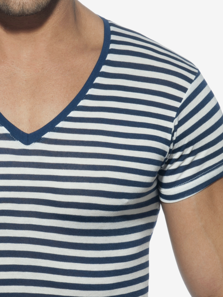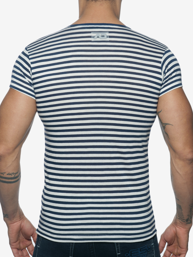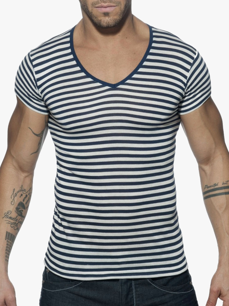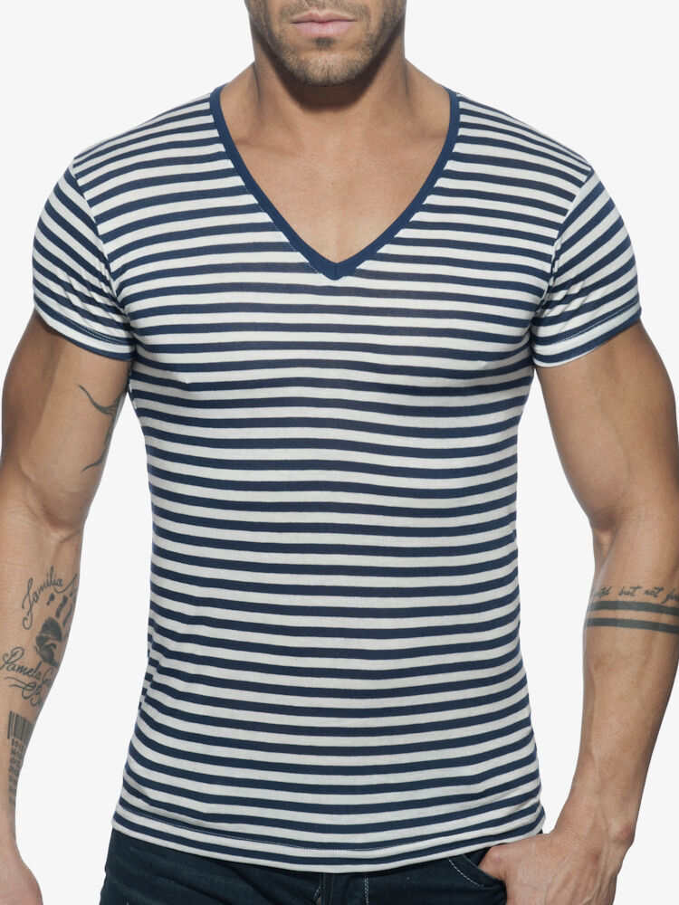 Ben je op zoek naar een t-shirt met een sportieve look én een comfortabel karakter? Dan is het Addicted AD587 Sailor T-Shirt Navy zeker iets voor jou. Een sailor t-shirt met v-hals en streepdessin. Ship ahoy!