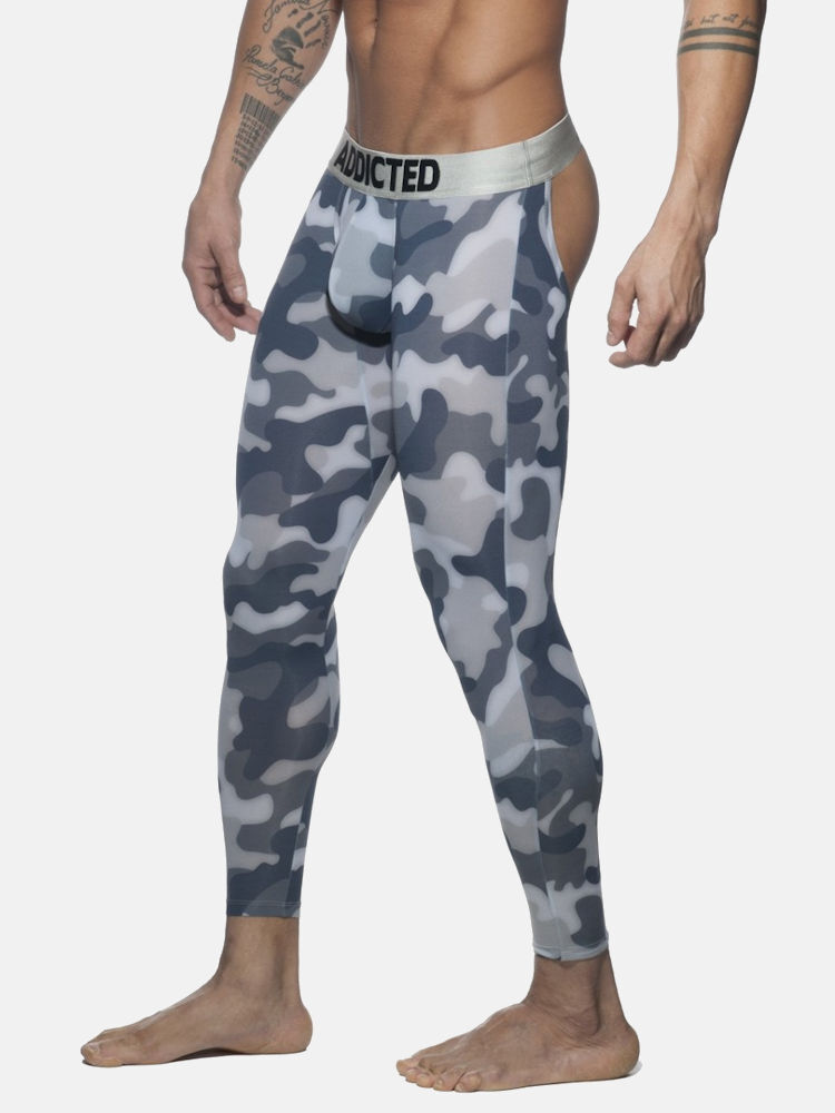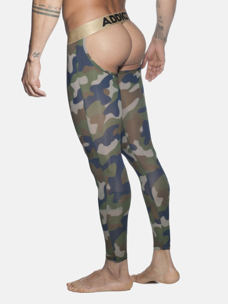 Addicted AD695 bottomless camo long john met pouch en open achterkant in kaki