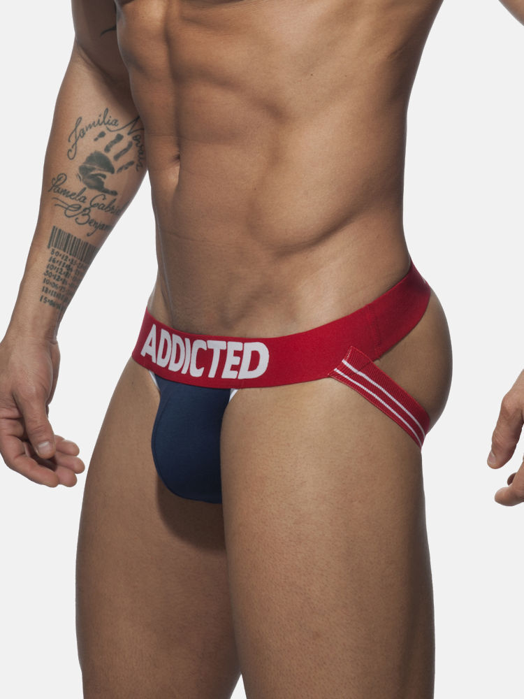 Deze jockstrap is voorzien van de bekende Pack Up-technologie van Addicted; aan de voorkant is de jock voorzien van een uitneembare zachte foam cup die zorgt voor een strak ogend, en extra groot profiel! Dubbel zo dik, dus bijna tot twee maten groter en twee keer zo veel plezier! Uitgevoerd in wit met donkerblauwe straps en accenten. Afgezet met een brede elastische tailleband in met Addicted logo. Een sportieve jockstrap voor mannen die niet bang zijn een stapje verder te gaan… Boost je zelfvertrouwen en laat je van je grootste kant zien met deze Super Bulk jockstrap. ADDICTED Underwear: Born Free!