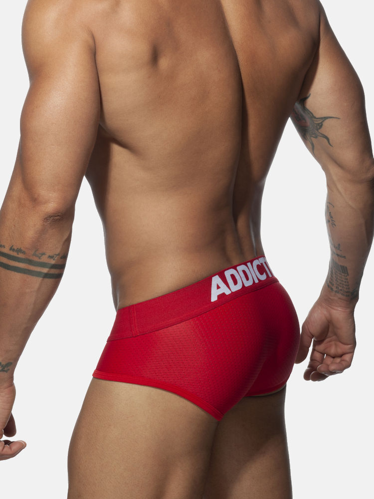 Speciaal ontworpen voor iedereen die houdt van comfortabele slips van goede kwaliteit, met een strakke pasvorm. Deze Addicted onderbroek is gemaakt van een zachte mesh kwaliteit die de slip zijn sportieve en gewaagde karakter geeft. De voorgevormde voorkant is aan de binnenzijde voorzien van een buideltje dat zorgt voor perfecte ondersteuning tijdens het dragen, en een natuurlijk push-up effect! Uitgevoerd in vurig rood en afgezet met brede elastische tailleband met Addicted logo. Kies jouw favoriete kleur en creëer de perfecte basis voor een sportieve en gewaagde outfit!