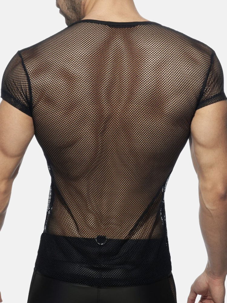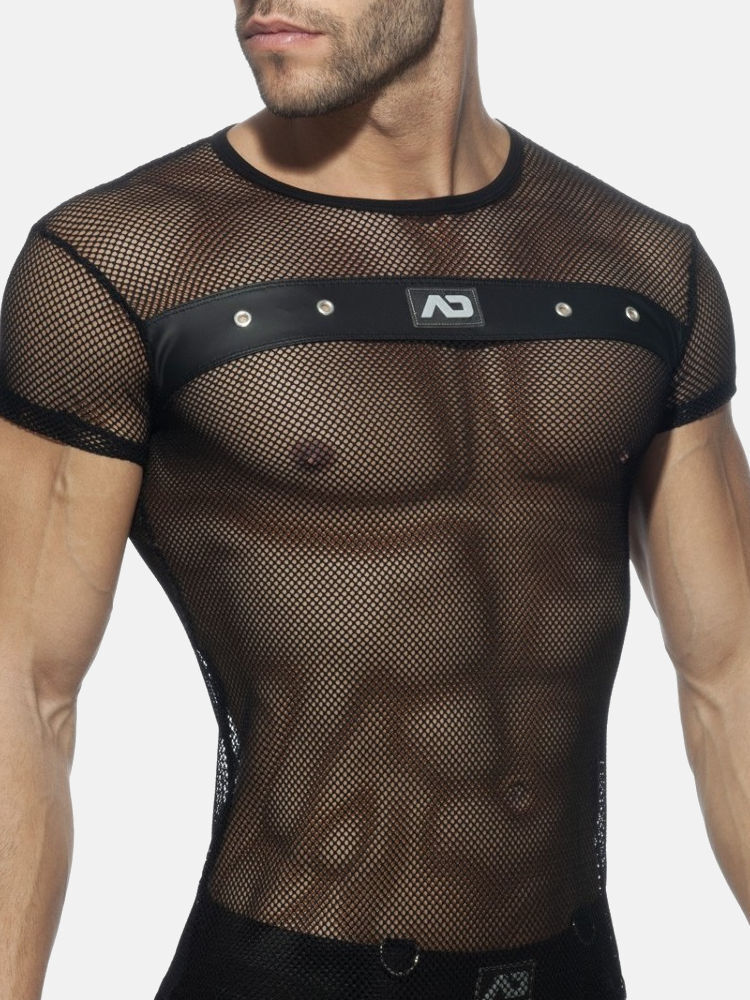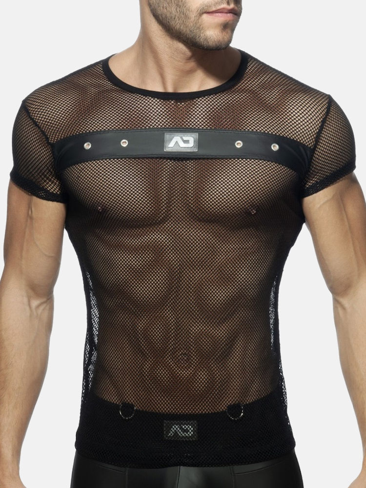 Addicted Fetish ADF123 mesh mixed t-shirt van zachte gaaskwaliteit in zwart