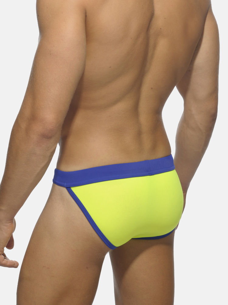 De ADDICTED Low Rise Bikini is een zwemslip voor mannen met het silhouette van een tangaslip. Hoog gesneden bij de benen en de voor extra comfort tijdens het dragen. Laag gesneden bij de buik en voorzien van een pouch die zorgt voor goede ondersteuning. Gemaakt van een uiterst dunne en zachte kwaliteit die licht doorschijnend is. Een spannende zwem tangaslip in fel geel met accenten in blauw, speciaal ontworpen om mee te baden, met de kenmerken die je gewend bent van een Addicted zwembroek: uitdagend en een genot om te dragen.