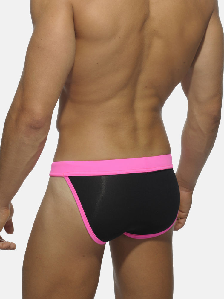 De ADDICTED Low Rise Bikini is een zwemslip voor mannen met het silhouette van een tangaslip. Hoog gesneden bij de benen en de voor extra comfort tijdens het dragen. Laag gesneden bij de buik en voorzien van een pouch die zorgt voor goede ondersteuning. Gemaakt van een uiterst dunne en zachte kwaliteit die licht doorschijnend is. Een spannende zwem tangaslip in zwart met accenten in neon roze, speciaal ontworpen om mee te baden, met de kenmerken die je gewend bent van een Addicted zwembroek: uitdagend en een genot om te dragen.