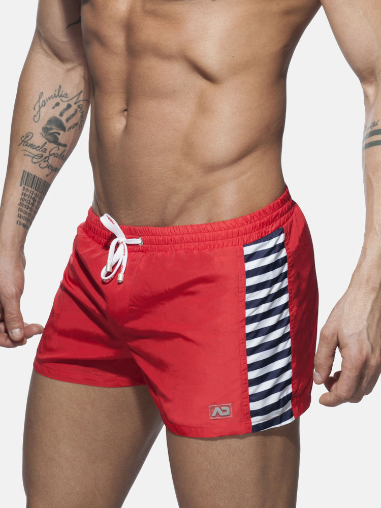 Addicted ADS177 Sailor Stripes Short zwemshort met nautische look in rood