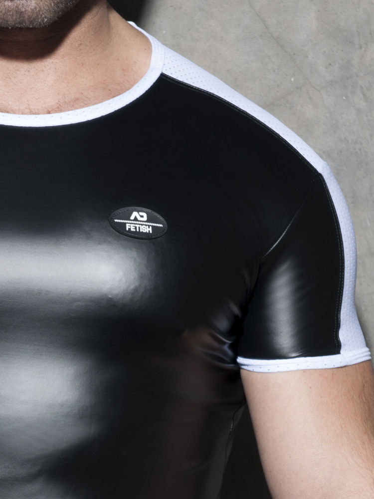 Addicted Fetish ADF117 rub mesh t-shirt van soepele zwarte stretch met witte mesh