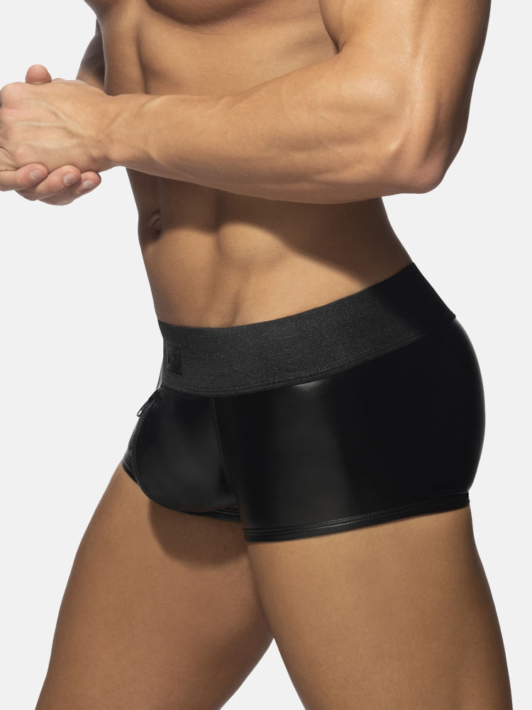 Kies je jouw fetish stijl en maak een statement. The party is yours! Deze Addicted ADF139 Allover Zip Rub Boxer is een heupmodel short met een gewaagde fetisj twist. Uitgevoerd in een zachte stretch kwaliteit met licht glimmende rubber look en een zwarte brede elastische tailleband. Voorzien van een ritssluiting van voor naar achter, die aan beide kanten is te openen. De pouch is aan de binnenzijde voorzien van een uitneembare siliconen cockring voor een groter ogend profiel en extra plezier tijdens het dragen! Draag deze fetish boxershort los, of onder je favoriete jeans of broek voor een stoere en ondeugende fetisj party look.