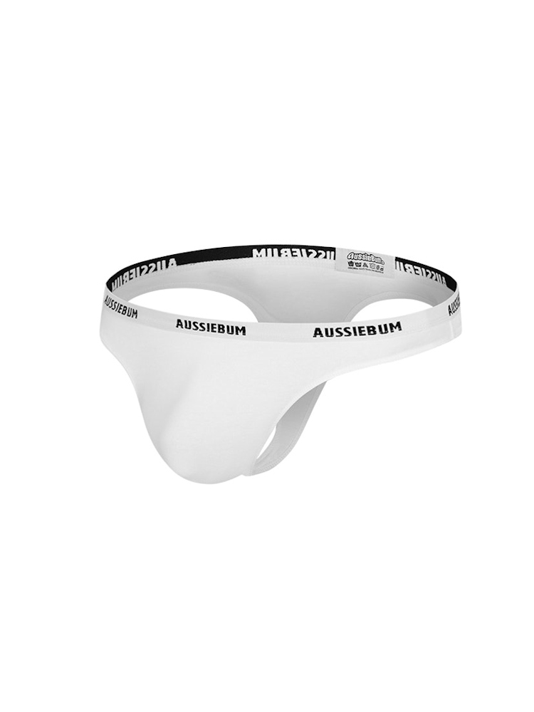 aussieBum Essential Thong katoenen herenstring met naadloze voorkant in wit