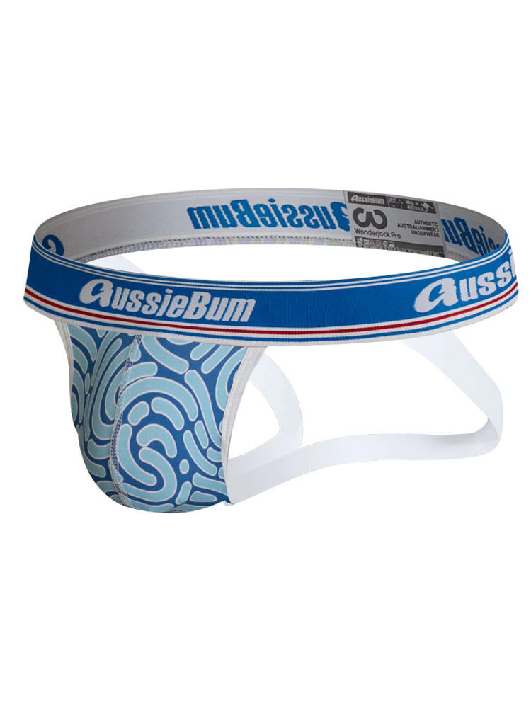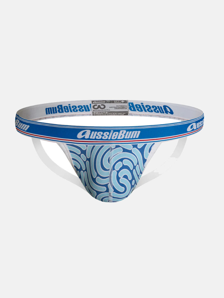 De Wonderjock serie laat jou er nóg robuuster uitzien vanuit alle hoeken. Het buideltje aan de binnenzijde van de pouch houdt alles netjes bij elkaar en zorgt voor een extra push-up effect! De jockstrap is gemaakt van een zachte katoen-stretch kwaliteit die zacht aanvoelt op de huid. Voor het nieuwe seizoen uitgevoerd met een grafisch dessin in blauw met lichtblauw. De aussieBum Wonderjock Pro Jock is ideaal om in te sporten of als basis voor een relaxte casual outfit.