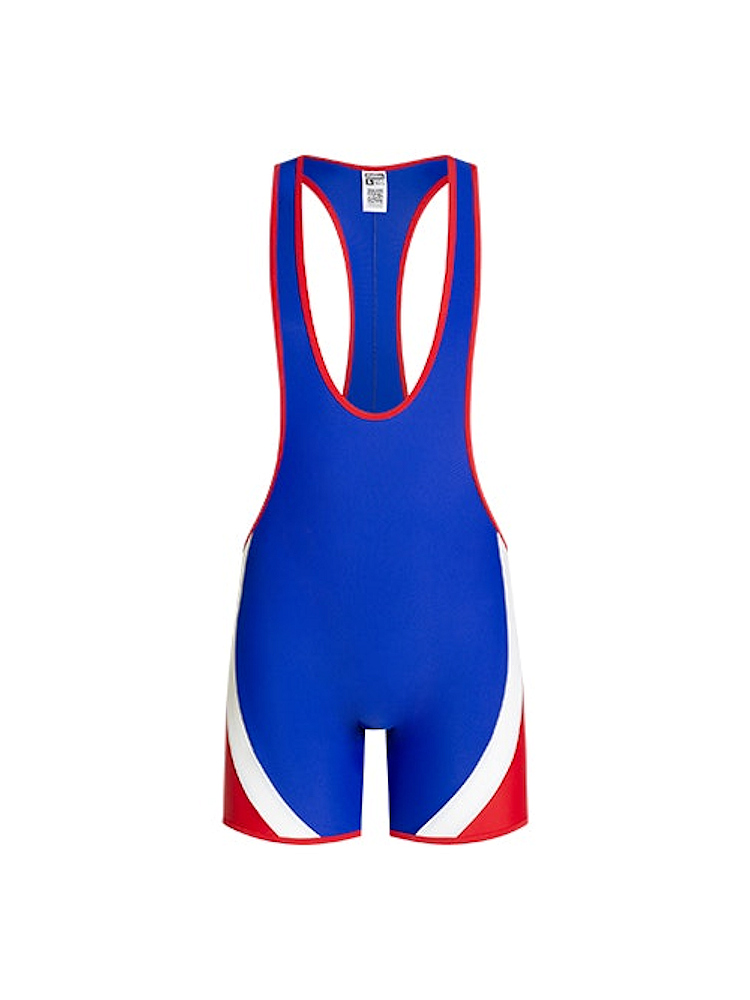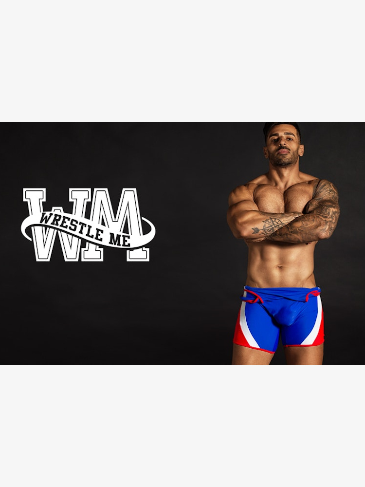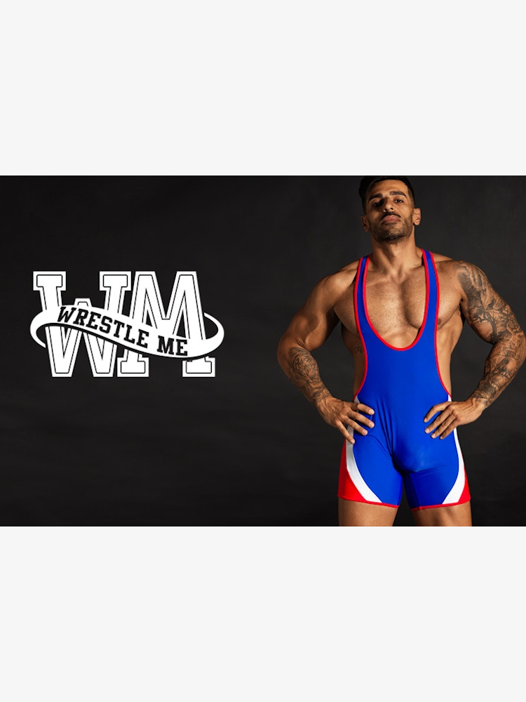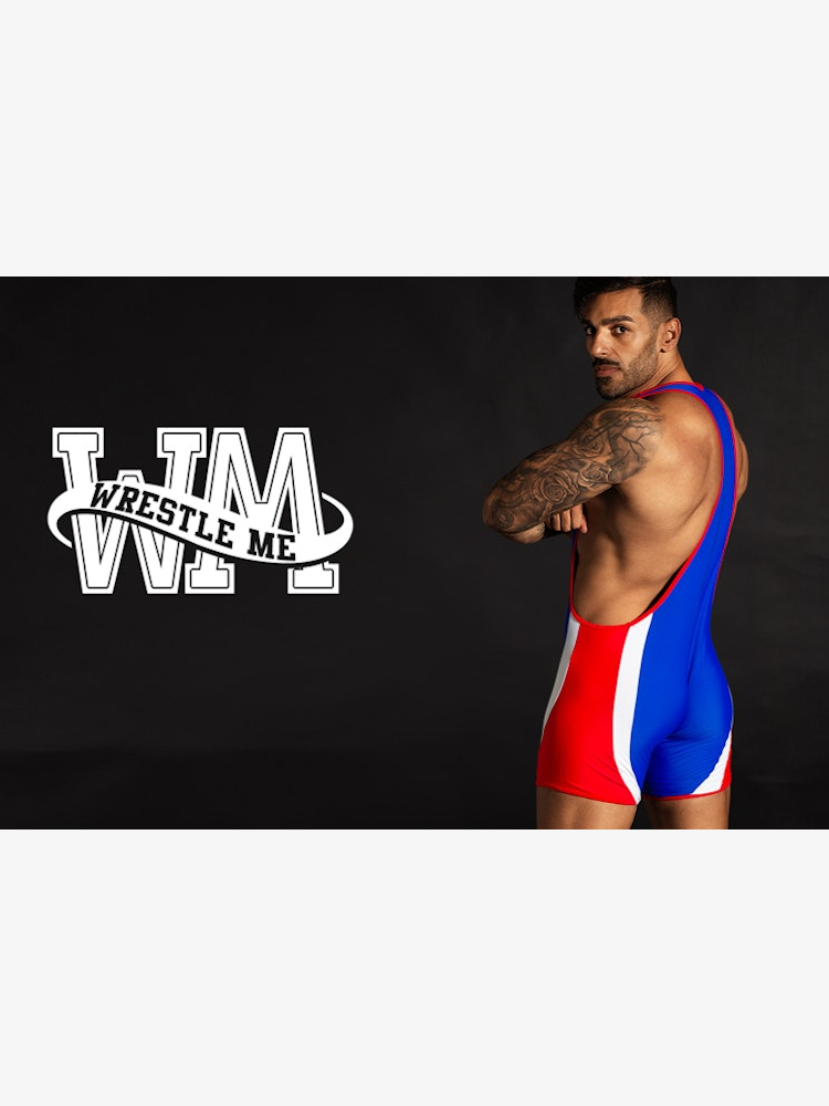 AussieBum Wrestleme 2.0 wrestling singlet van blauwe stretch met inzet in wit en rood