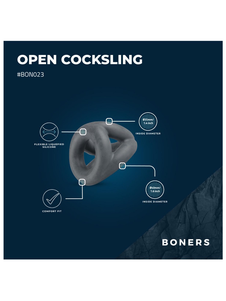 Boners Open Cocksling Triple Cockring BON023 Dark Grey