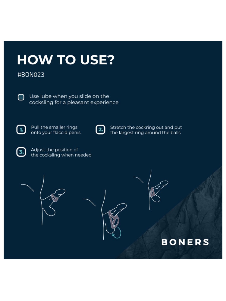 Voeg een extra dimensie toe aan jouw liefdesspel of play sessies met de stoere toys en accessoires uit de Boners collectie. Geniet langer van een harde erectie, en ervaar daarnaast meteen het plezier van een ballstretcher met de Boners Open Cocksling Triple Cockring. Gemaakt van soepele siliconen voor gemak, extra plezier en genot.