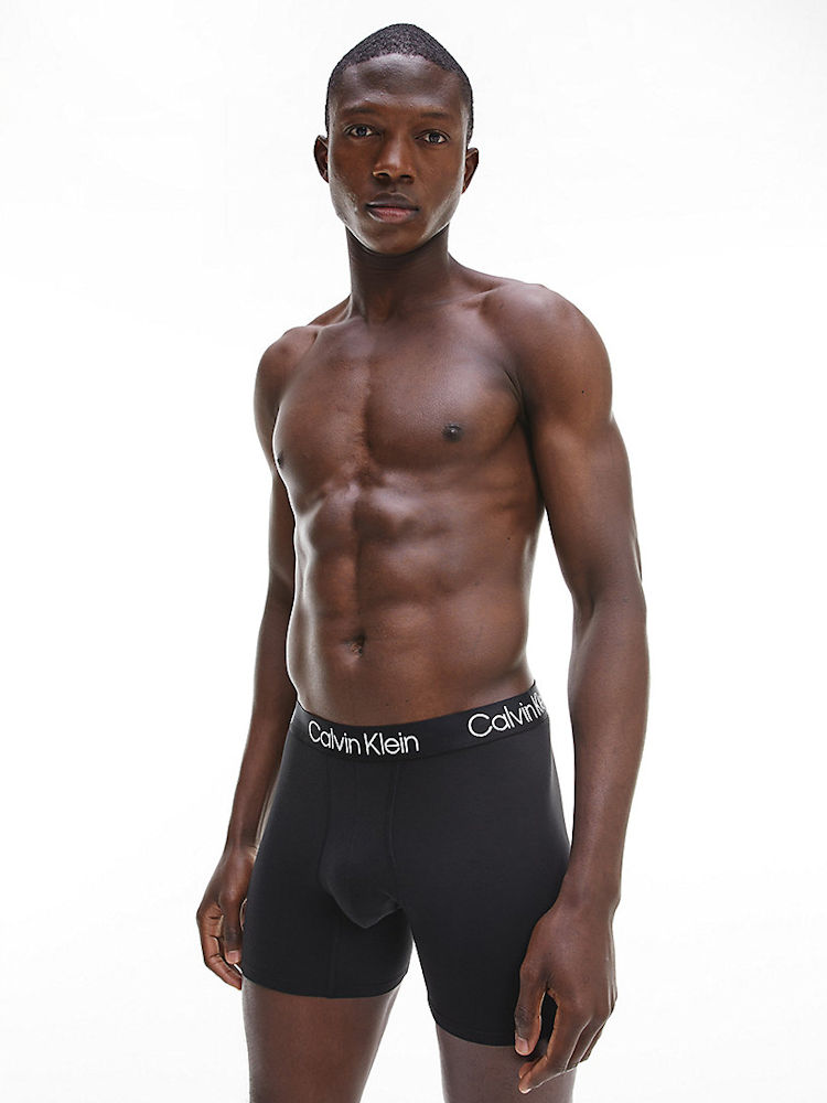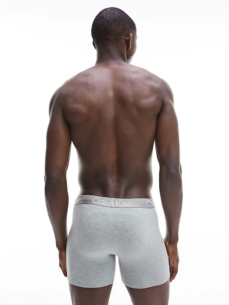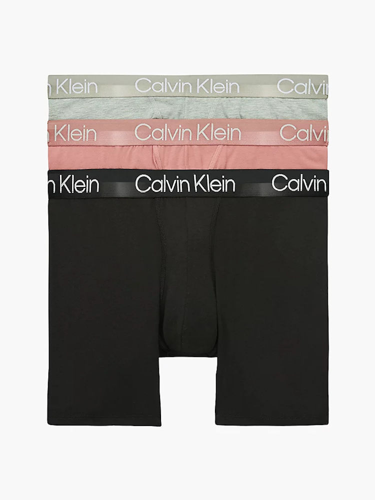 Met deze 3 Pack Boxer Briefs uit de Calvin Klein Modern Structure underwear collectie heb je de mogelijkheid kennis te maken met drie comfortabele lange katoenen boxershorts. Deze set bestaat uit drie lange boxershorts met elastische logo tailleband in uni grijs, zwart en oud roze. Welke kleur je ook kiest, ze zijn alle een plezier om te dragen. De zachte katoen-stretch biedt perfecte ondersteuning en voelt zacht aan op de huid. De Modern Structure voorkant zorgt voor een strakke pasvorm en extra comfort tijdens activiteiten. Ben jij fan van lange Calvin Klein boxershorts? Ontdek dan snel deze coole en comfortabele 3 pack boxershorts! Gemaakt met gerecyclede materialen dus ook goed voor het milieu.
