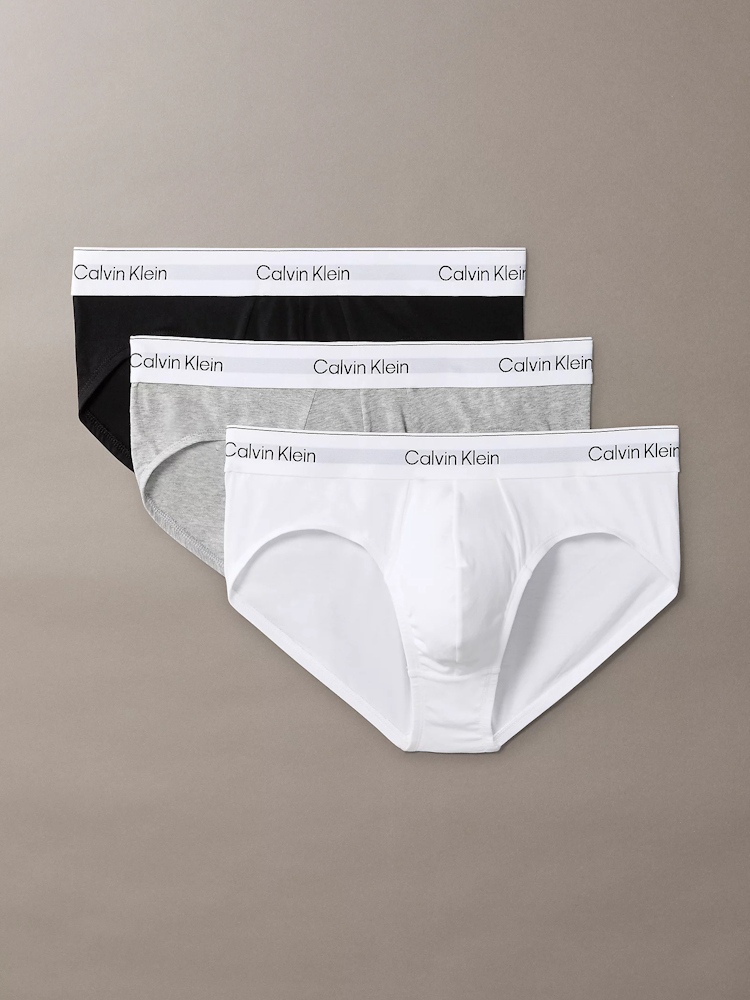 Calvin Klein Icon Cotton Stretch Hip Brief 3 Pack LV00NB4388 set heupslips in uni wit, grijs en zwart