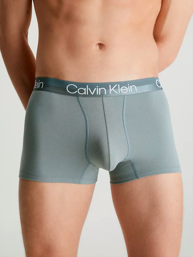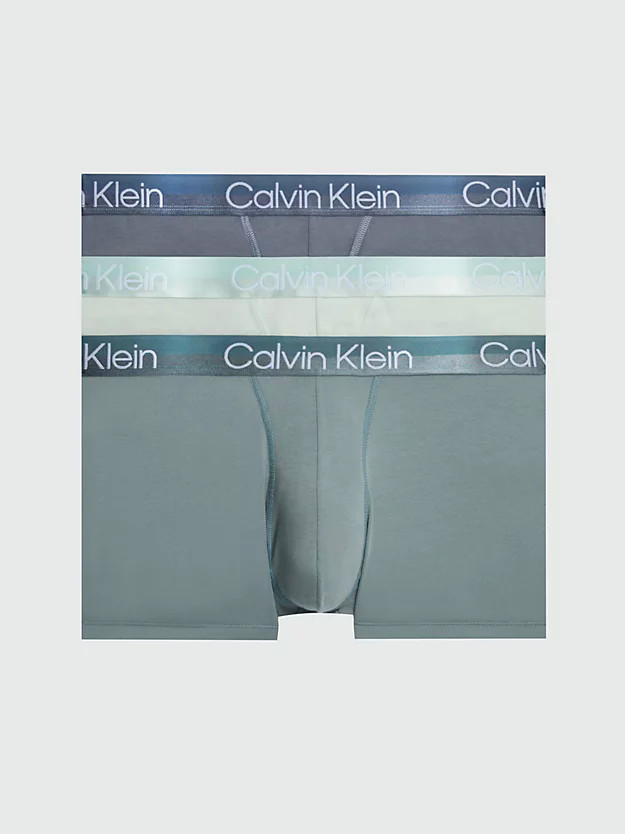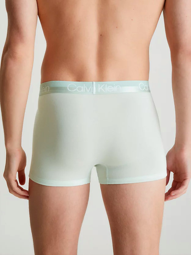 Met deze 3 Pack Trunk uit de Calvin Klein Modern Structure underwear collectie heb je de mogelijkheid kennis te maken met drie comfortabele Calvin Klein boxershorts. Deze set bestaat uit drie hoge taille boxershorts met elastische logo band in uni mint, asfaltgrijs en blauw. Welke kleur je ook kiest, ze zijn alle een plezier om te dragen. De zachte katoen-stretch biedt perfecte ondersteuning en voelt zacht aan op de huid. De Modern Structure voorkant zorgt voor een strakke pasvorm en extra comfort tijdens activiteiten. Ben jij fan van Calvin Klein Trunk shorts? Ontdek dan snel deze coole en comfortabele Modern Structure 3 pack Trunk! Gemaakt met gerecyclede materialen dus ook goed voor het milieu.