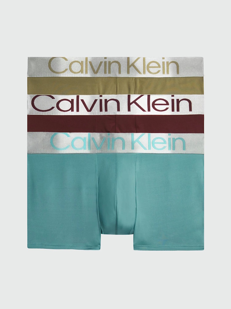 Calvin Klein Reconsidered Steel Low Rise Trunk 3 Pack boxers in blauw, bruin en groen