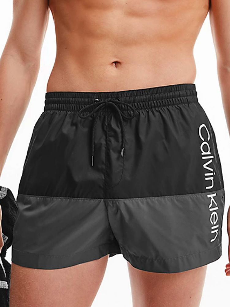 De ultieme zwemshort van Calvin Klein in vlakken van zwart en grijs: Calvin Klein Swim Short KM0KM00728!