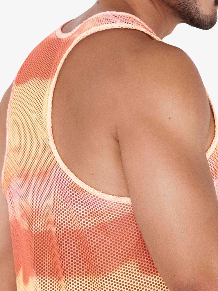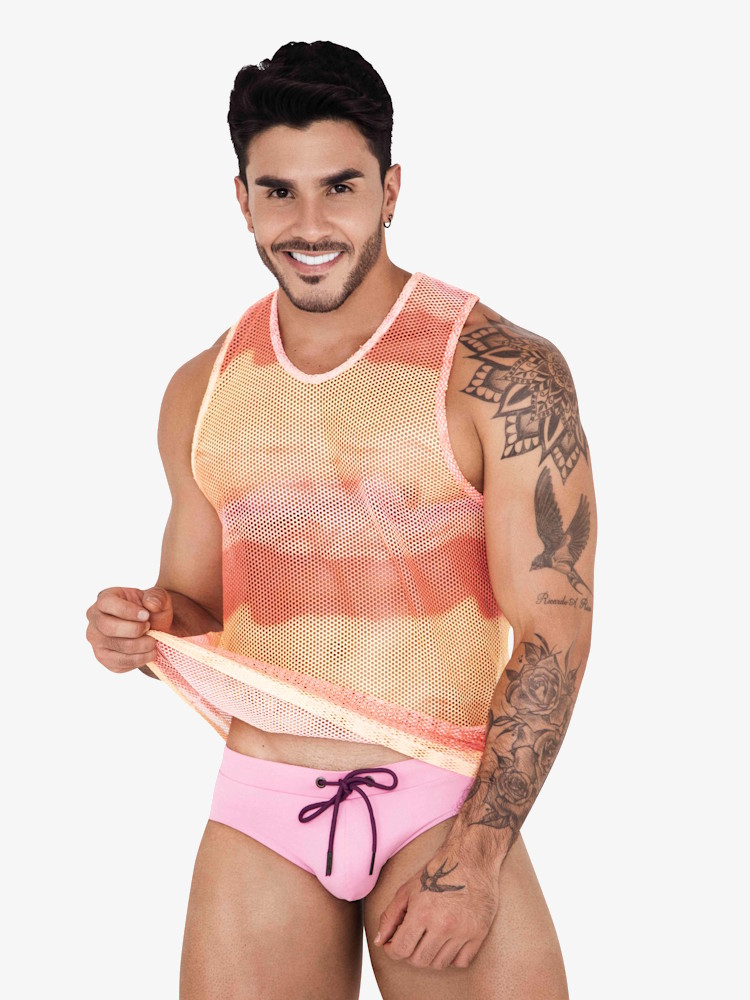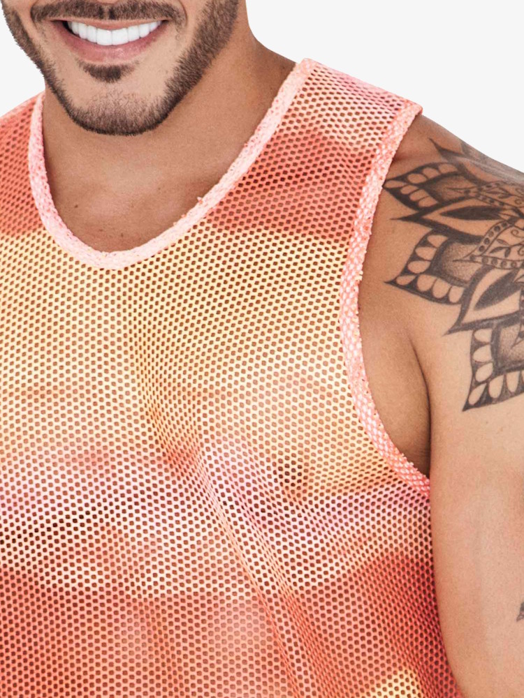 Ben je op zoek naar een luchtige tank top met een sportief en stijlvol design en gemaakt van de fijnste materialen, dan is deze Clever Underwear Adriatic Tank Top 152103 Yellow zeker iets voor jou. Een coole singlet voor mannen met een sportieve én zonnige uitstraling. Uitgevoerd in zachte grove mesh met degradé patroon in geel- en rozetinten.