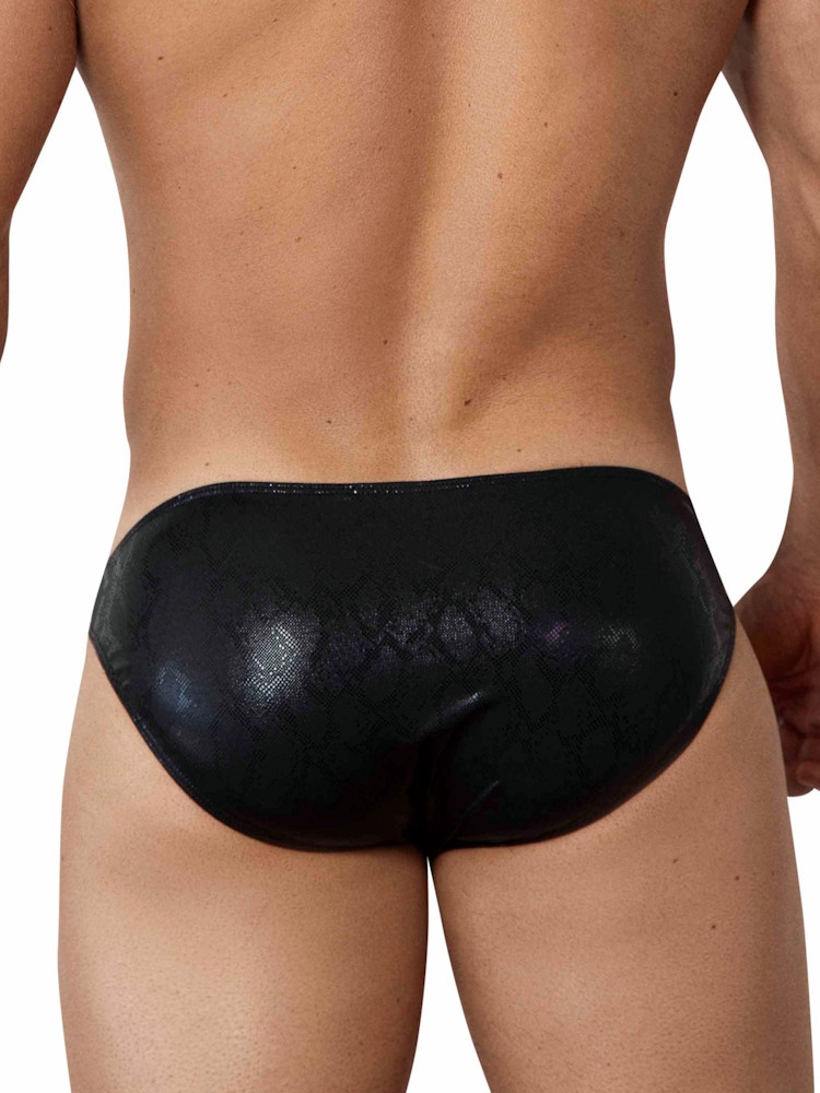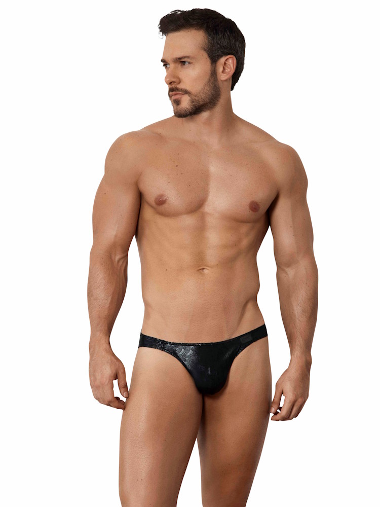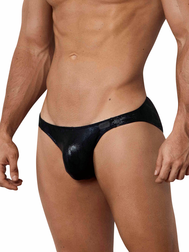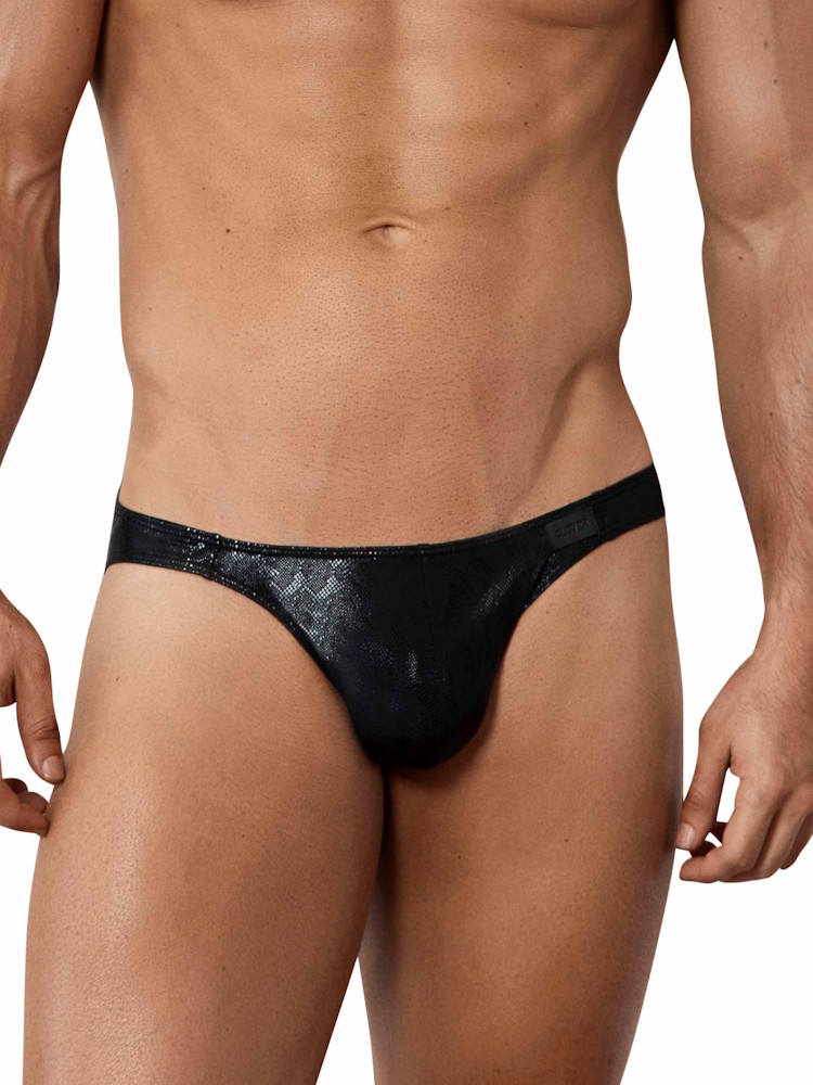 Maak kennis met de wilde wereld van Clever Underwear. De nieuwe collectie combineert glimmende stoffen met stoere dierenprints. Toon jouw stoere kant met de Clever Underwear Brilliant Bikini Brief 157311 Black. Een schitterende minislip voor mannen van soepele zwarte stretch met glimmende slangenprint.