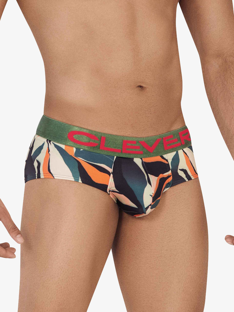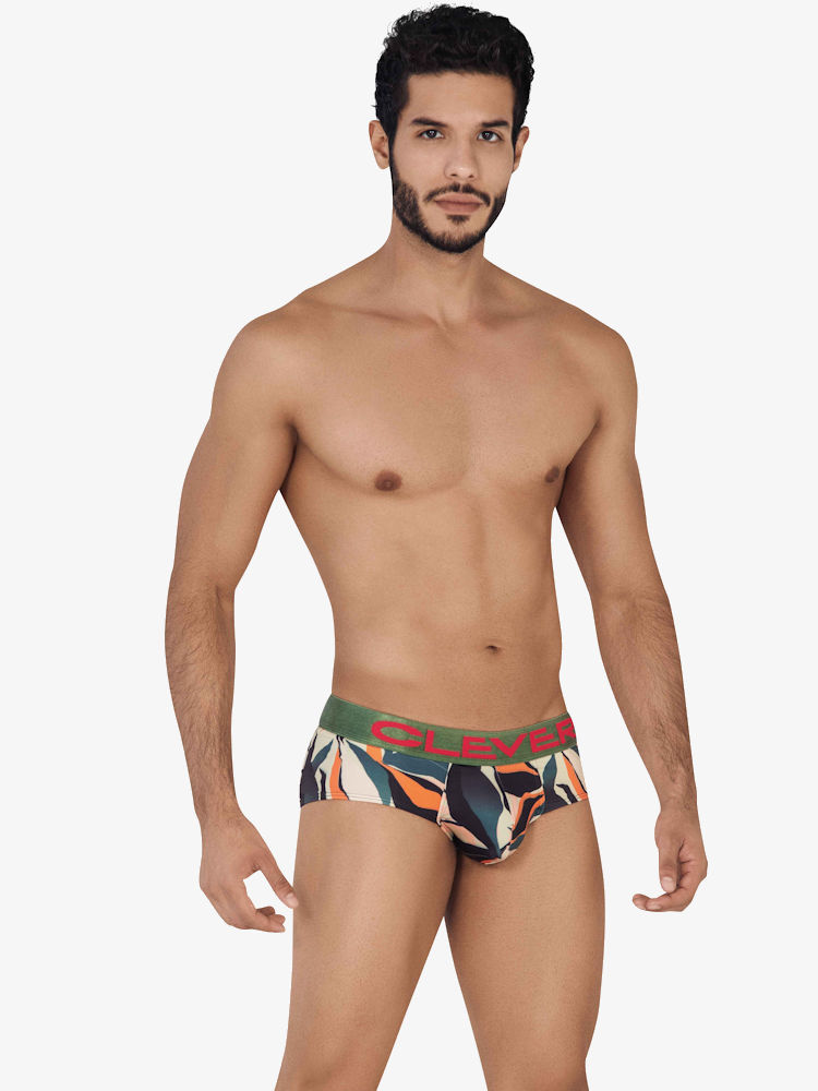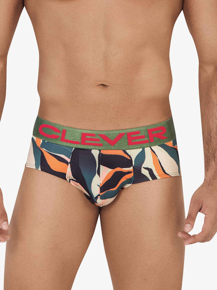 De slip is gemaakt van een ultra zachte stretch kwaliteit en heeft een pasvorm die perfect aansluit op het lichaam. Deze onderbroek met brede zijkant is aan de voorkant ruim vormgegeven zodat perfecte vrijheid en ondersteuning wordt gegeven tijdens het dragen. Deze Clever slip is uitgevoerd in een mooie dunne stretch kwaliteit die soepel om het lichaam valt. De coole retro bladeren print in oranje- en groentinten geeft de onderbroek een retro karakter. Afgezet met brede elastische tailleband. Ben jij een man die graag comfortabele én coole slips draagt, dan is deze mooie Clever Classic Brief zeker iets voor jou. Het is een slip die al bij het aantrekken een gevoel van comfort en vrolijkheid geeft.