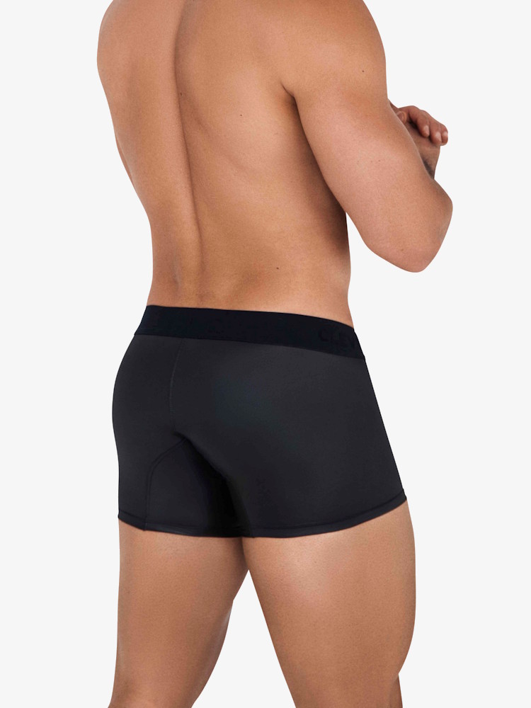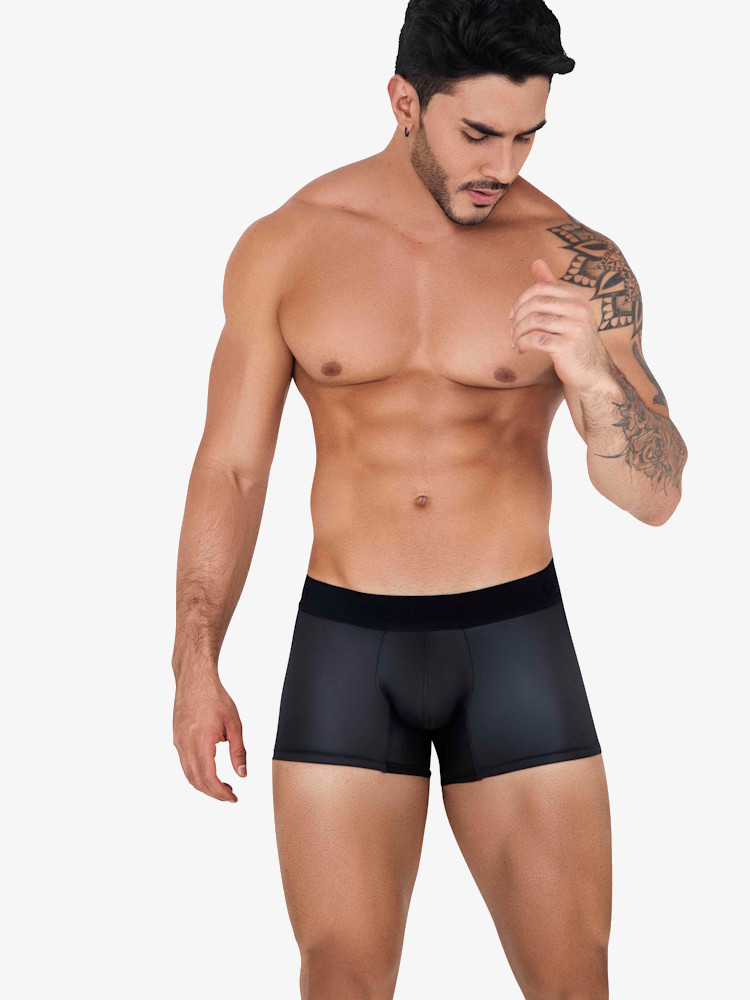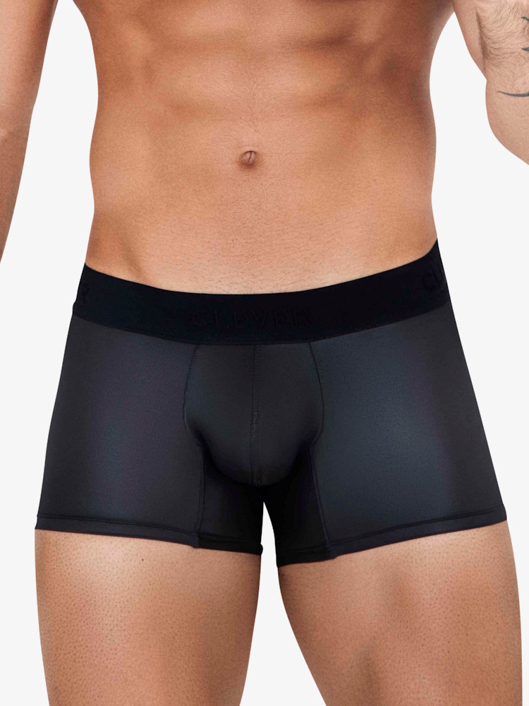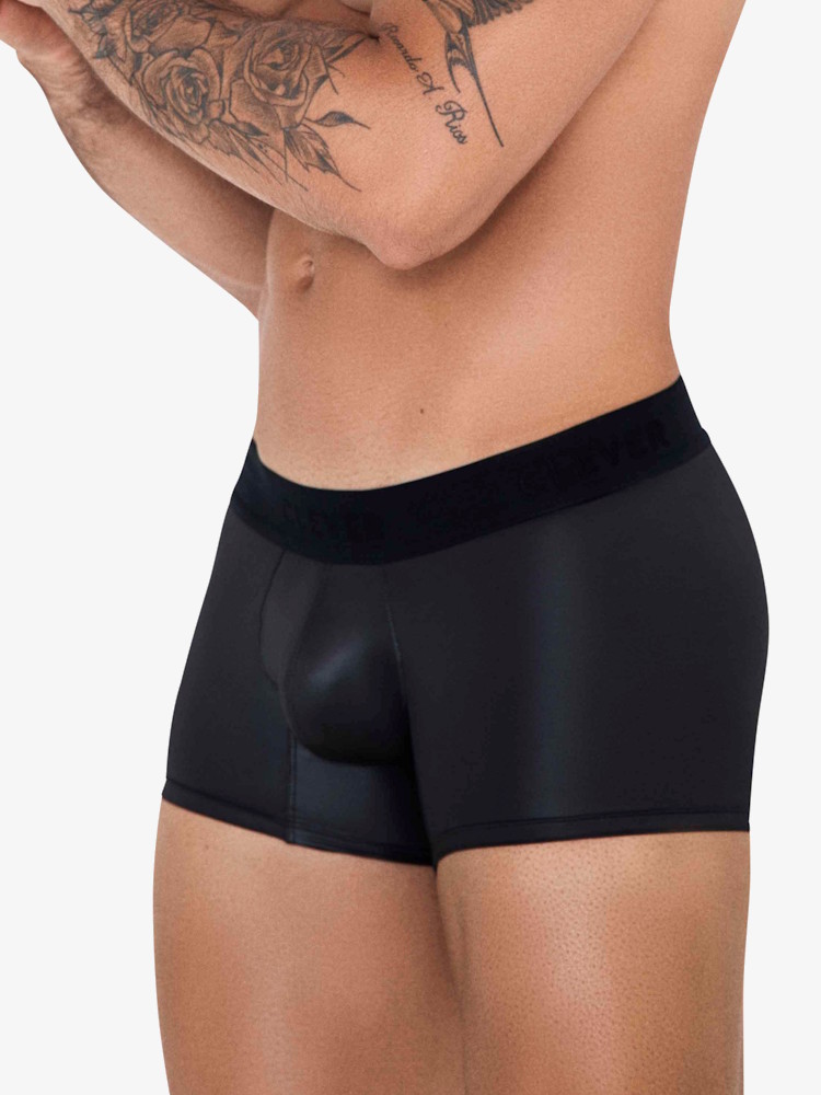 Strak design en een verfijnde gladde stof; maak kennis met de Clever Underwear Kraken Trunks 153311 Black. Een prachtige heupboxer van soepele zwarte stretch met glimmende wetlook afwerking. Ervaar zelf het aangename draagplezier, maar doe dit in stijl met deze stijlvolle korte zwarte Clever boxershort.