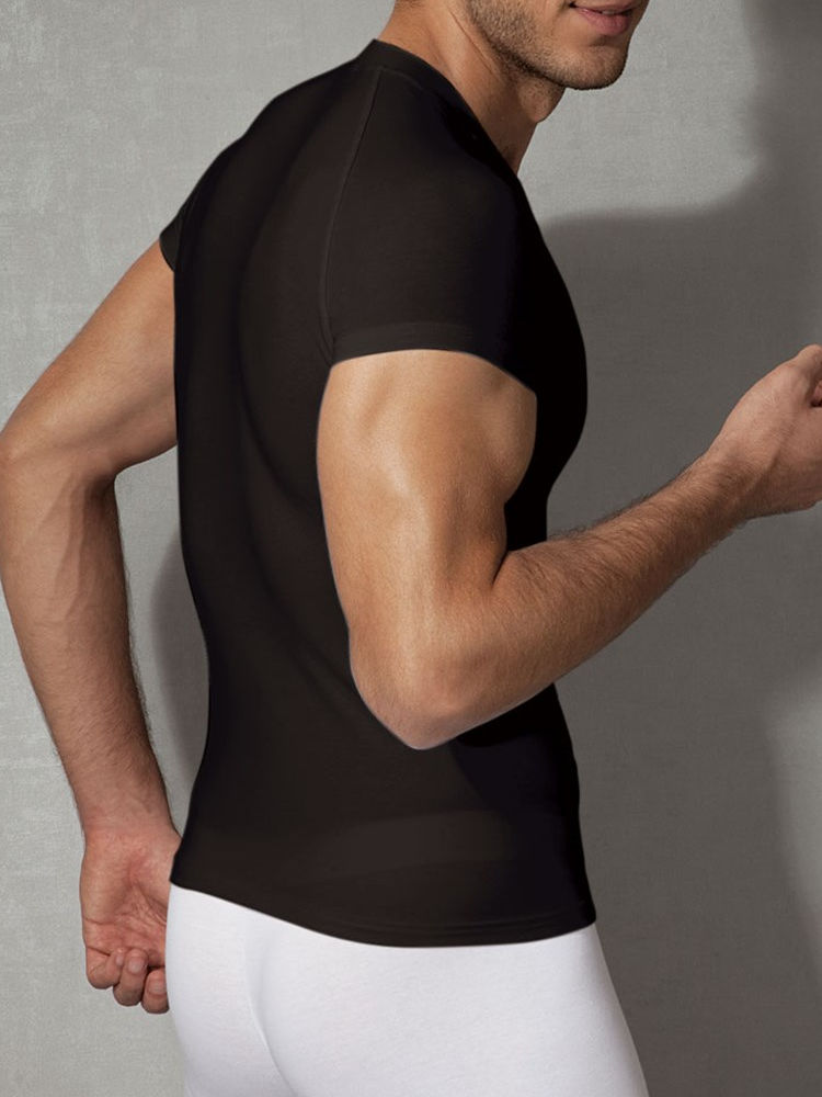 Doreanse bewijst keer op keer dat kwaliteit, comfort en een strakke look niet duur hoeven te zijn. Dit zwarte t-shirt is gemaakt van een dunne, natuurlijke katoen-modal menging die zacht aanvoelt op de huid en zorgt voor een prettig gevoel, dag en nacht. De gladde belijning, coupnaden aan de zijkanten en raglanmouwen geven het shirt een stoere, strakke en moderne look waarmee je zeker goed voor de dag zult komen. Draag het shirt om te sporten, of combineer het met je favoriete jeans of pantalon voor een stijlvolle en strakke look. Ervaar zelf het rijke gevoel en draagcomfort van Doréanse ondergoed.