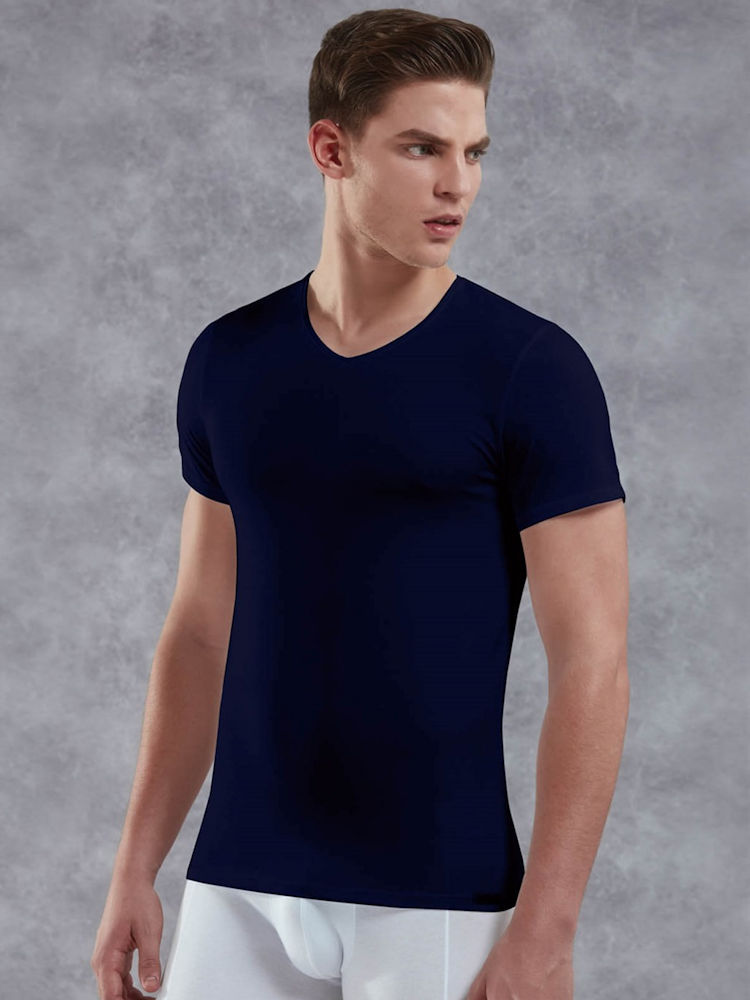 Doreanse bewijst keer op keer dat kwaliteit en comfort niet duur hoeven te zijn. Dit donkerblauwe shirt met v-hals is gemaakt van een dunne, natuurlijke katoen-modal menging die zacht aanvoelt op de huid en zorgt voor een prettig gevoel, dag en nacht. De slanke pasvorm en de ondiepe v-halslijn geven dit shirt een cool en modern tintje waarmee je zeker goed voor de dag zult komen. Draag het shirt om te sporten, of onder een overhemd of trui voor een relaxte en bijna niet-zichtbare look. Ervaar zelf het luxe gevoel en draagcomfort van Doreanse ondergoed.