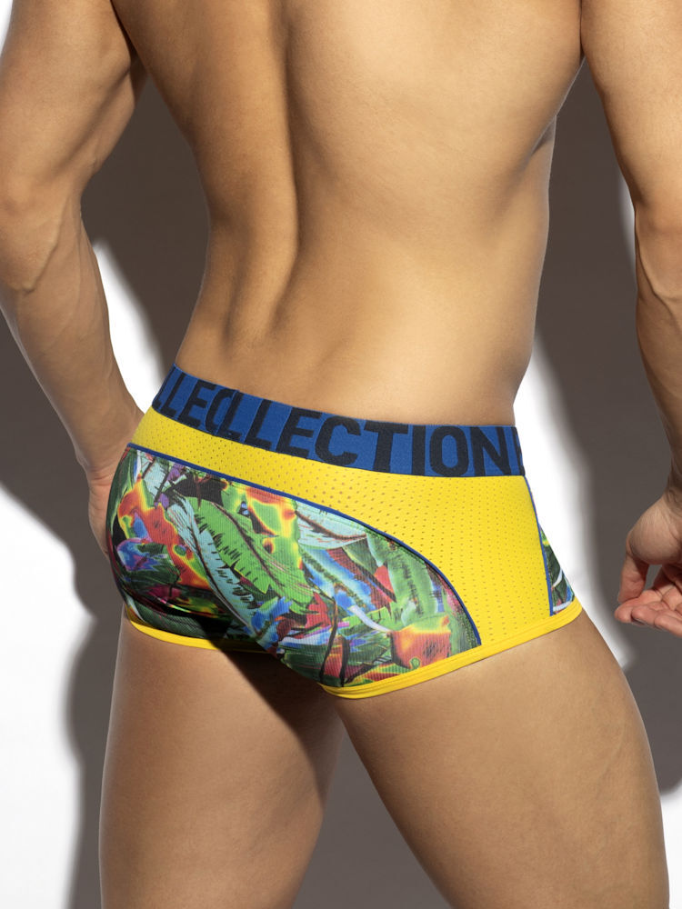 ES Collection UN418 floral mesh trunk van felgekleurde rib met gele mesh inzet