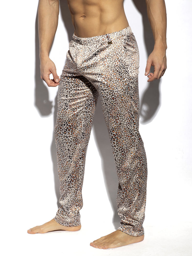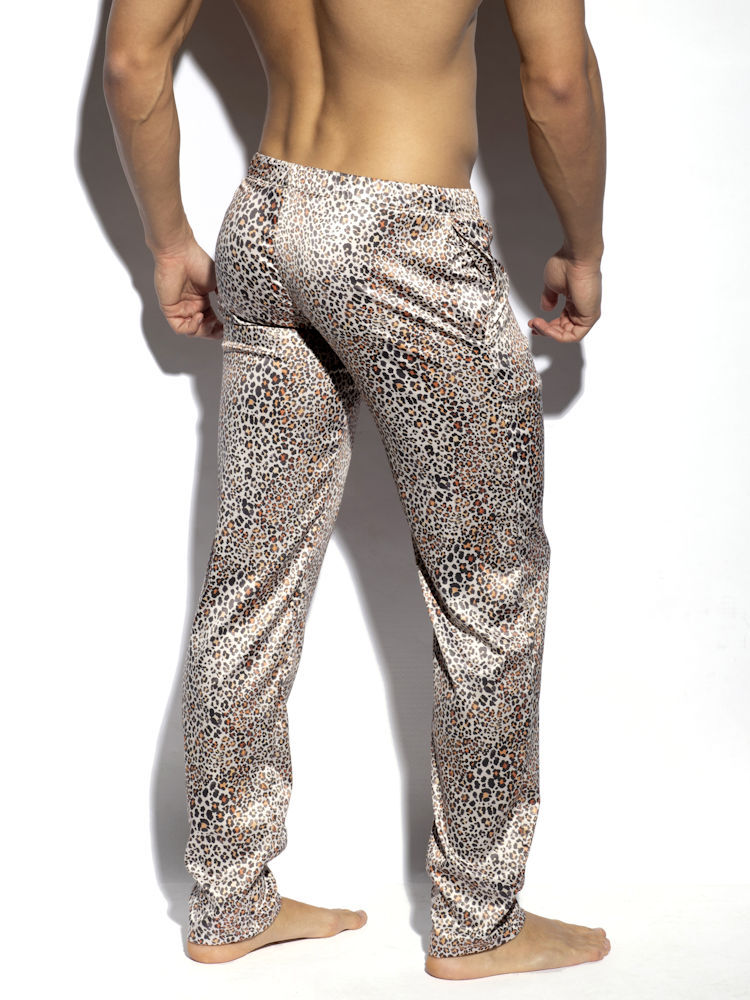 ES Collection UN450 loungebroek van glimmende satijn met luipaardprint