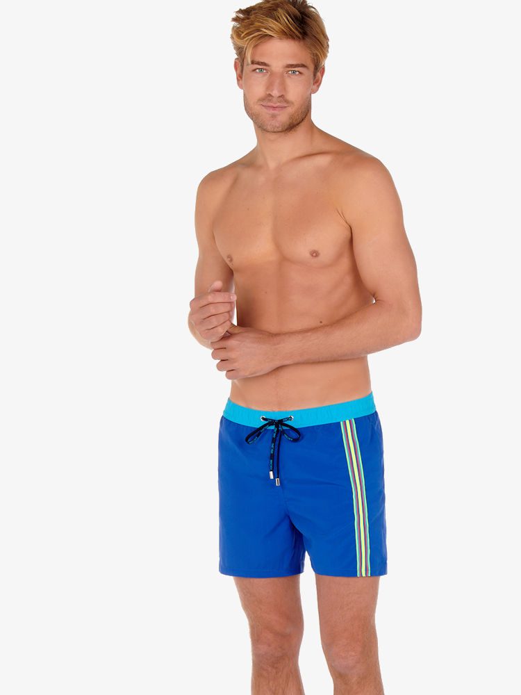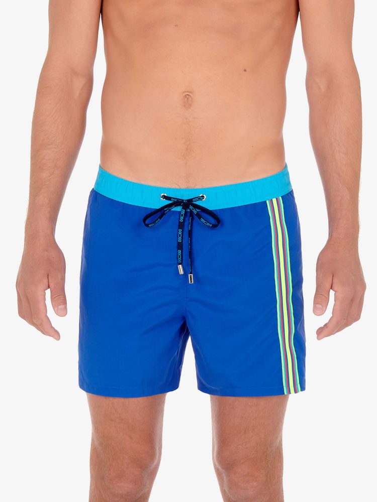 Maak kennis met de luxe Hom Beachwear collectie met deze sportieve Hom beach boxer Mistral in fel blauw.