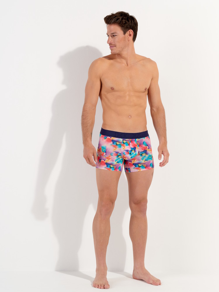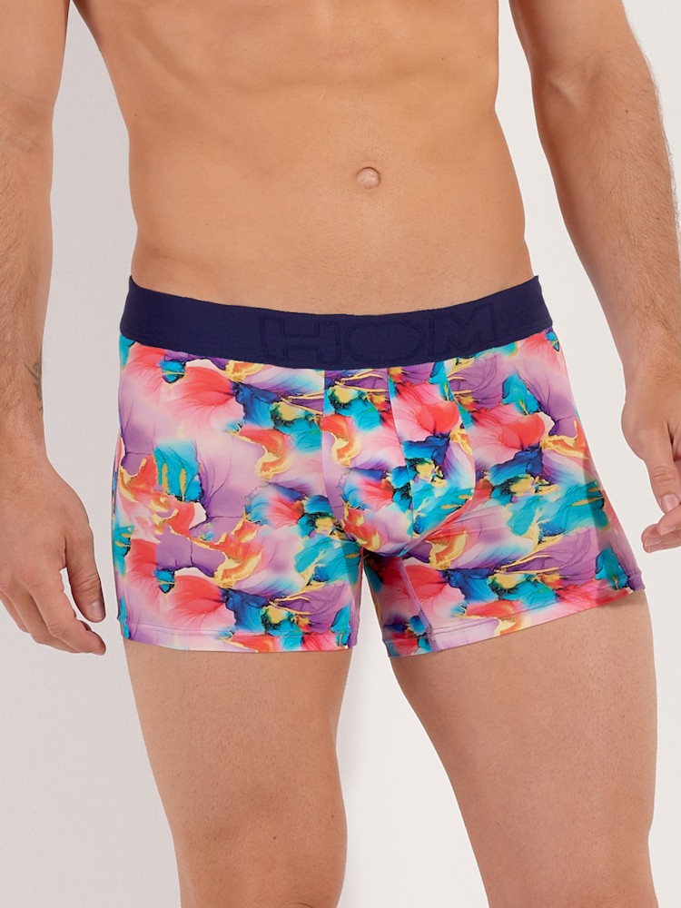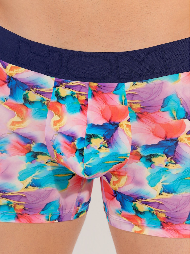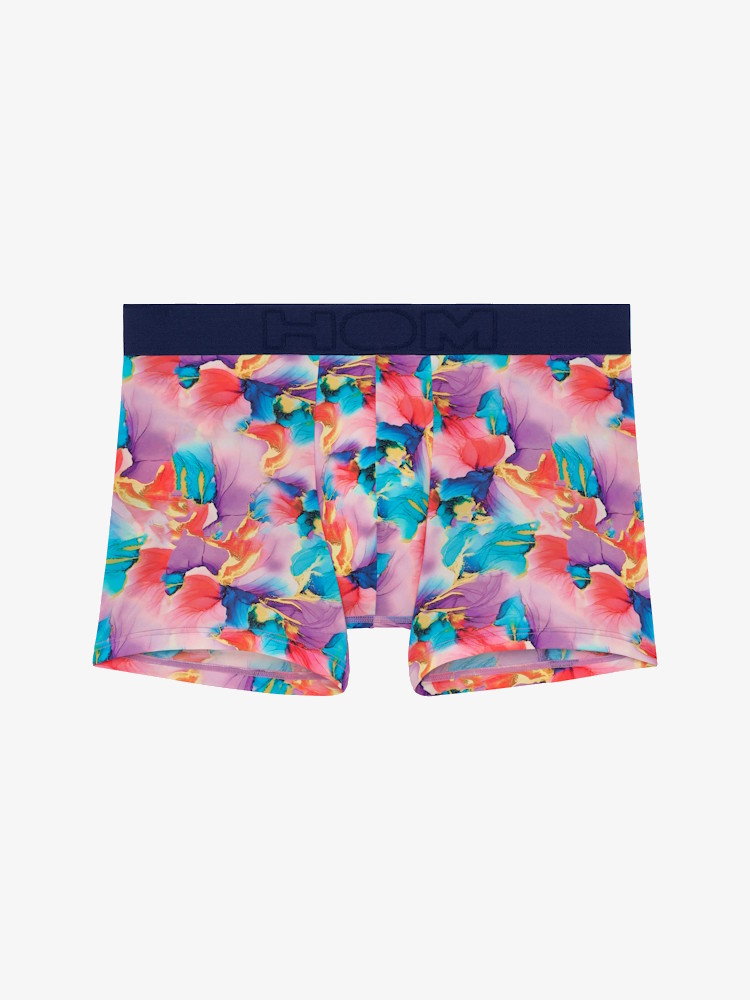 Voeg kleur, stijl en comfort toe aan je garderobe met de Hom Boxer Briefs Aquaflowers 402952 Multicolor Print; een moderne boxershort met strakke vormgeving, gemaakt van soepele microfiber met kleurrijke aquarel bloemenprint.
