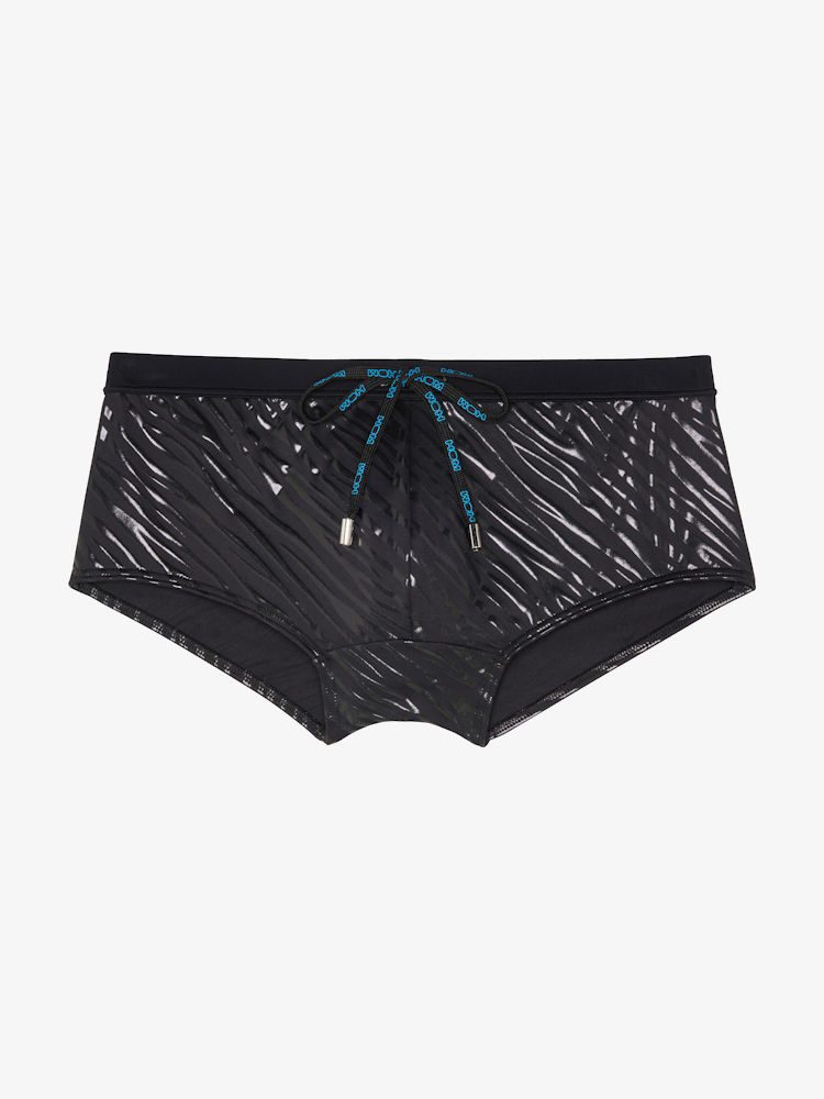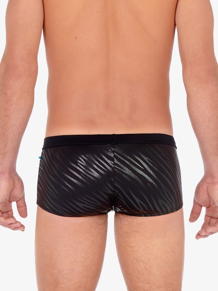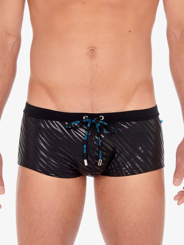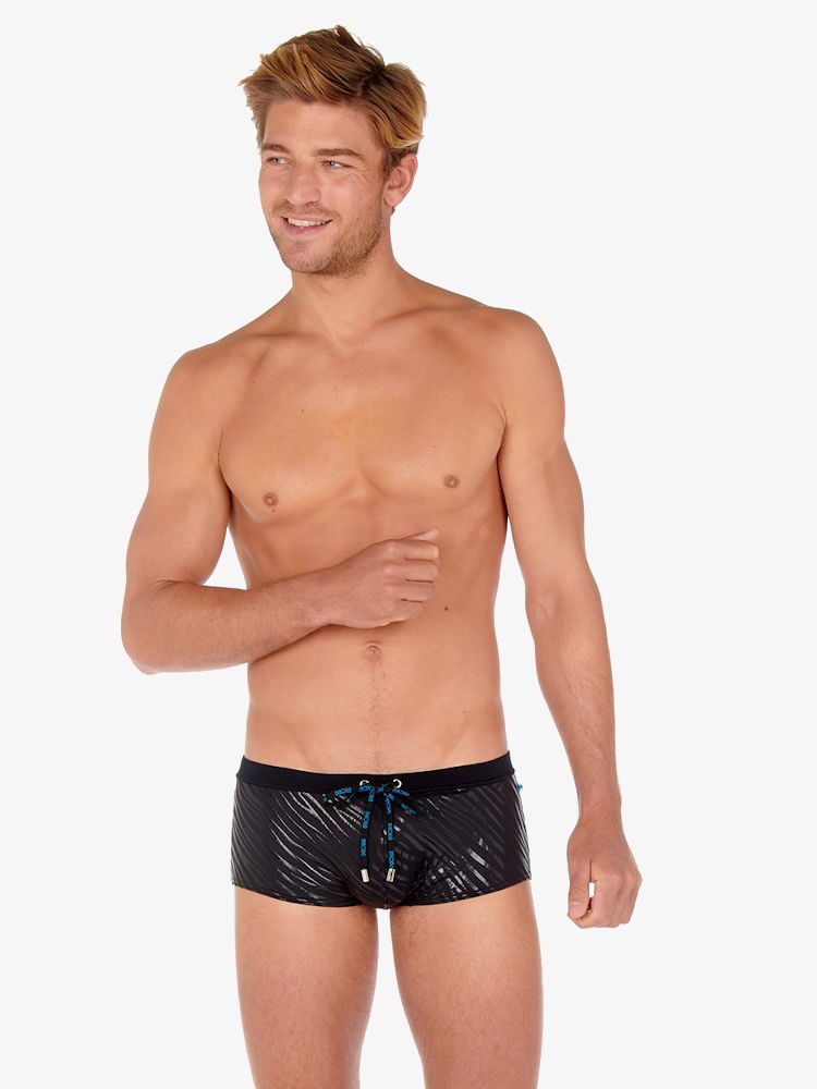 De Hom Beachwear Clubber zwem trunk is een heupmodel zwemboxer en dus laag gesneden bij de buik voor extra comfort. De zwembroek is gemaakt van een soepele zwarte stretch met wilddessin in glimmende afwerking voor een coole look. De pouch voorkant zorgt voor goede ondersteuning en een strak ogend profiel waardoor jouw zelfvertrouwen een boost krijgt. Kortom, veel heb je niet nodig om in stijl het strand of zwembad te betreden!