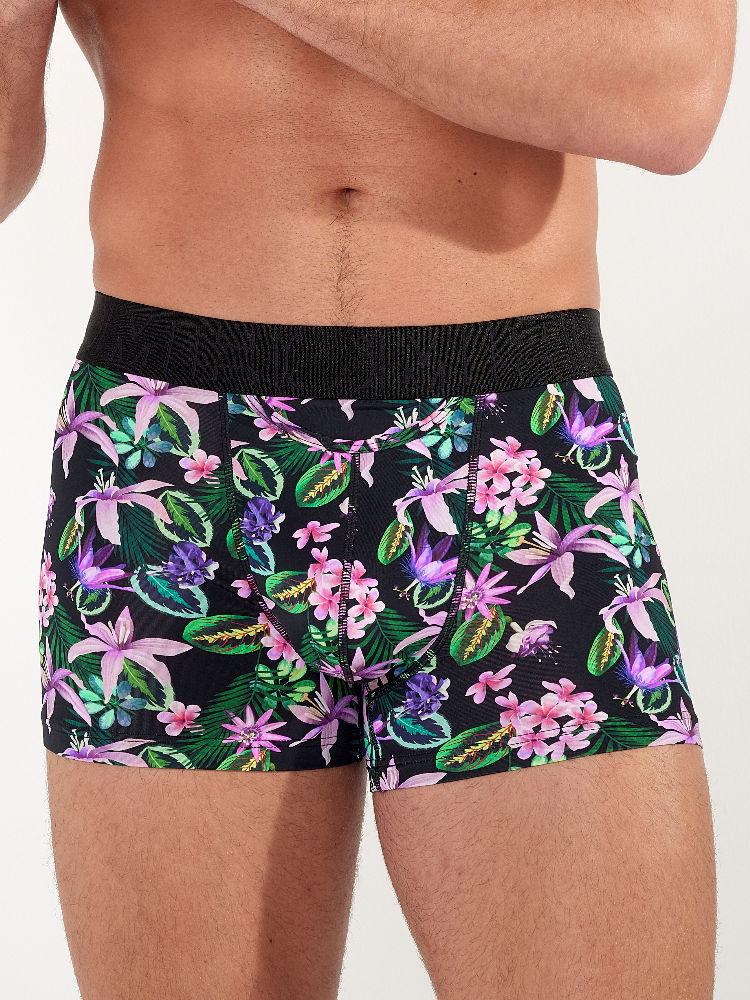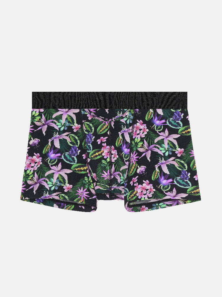 Ontdek de Hom Funky Styles collectie. Met de hoogwaardige kwaliteit en moderne pasvorm die je van Hom gewend bent, maar dan nét iets funkier! Voeg kleur, stijl en comfort toe aan je garderobe met de Hom Funky Styles Boxer Briefs HO1 403045 Pink Print; een korte strakke boxershort met moderne vormgeving en horizontale gulp, gemaakt van soepele zwarte microfiber met kleurrijke roze bloemenprint.