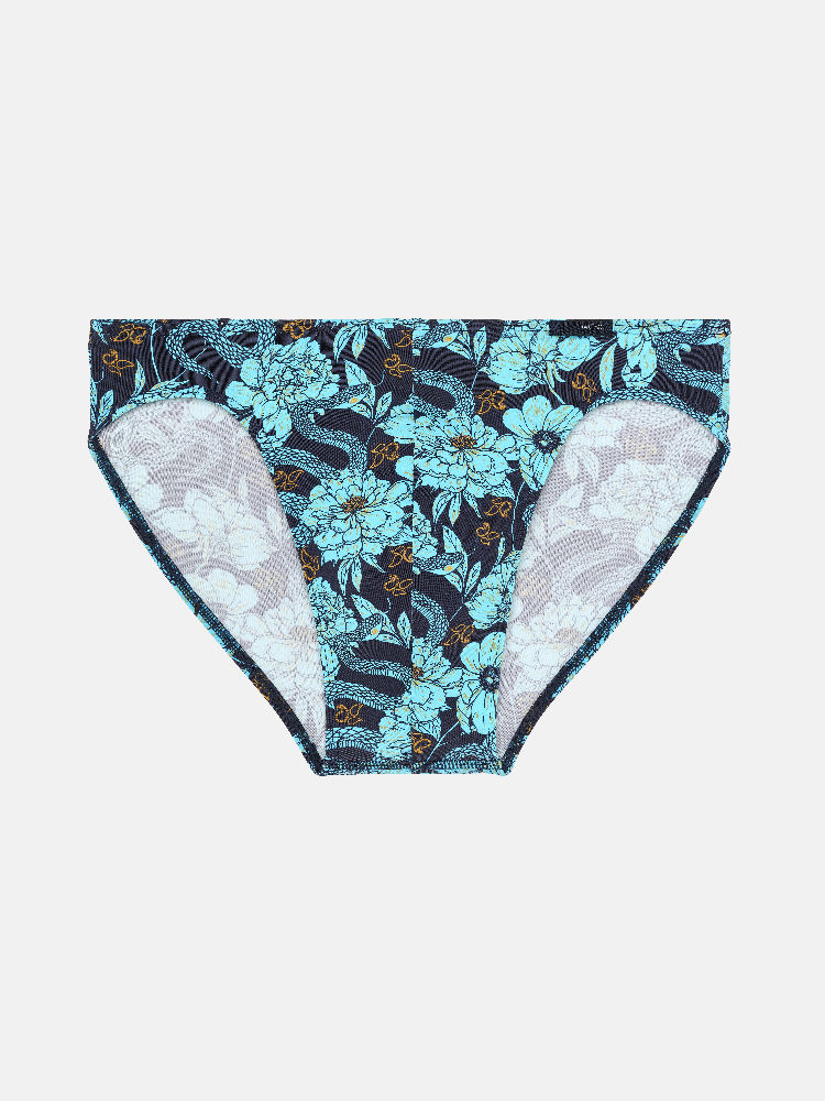 Ontdek de Hom Funky Styles collectie. Met de hoogwaardige kwaliteit en moderne pasvorm die je van Hom gewend bent, maar dan nét iets funkier! Voeg kleur, stijl en comfort toe aan je garderobe met de Hom Funky Styles Comfort Micro Briefs 403044 Blue Print; een minislip met smalle taille, gemaakt van soepele microfiber met rijke bloemen- en slangenprint in turkoois.