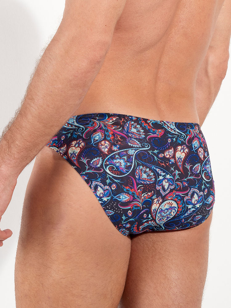 Ontdek de Hom Funky Styles collectie. Met de hoogwaardige kwaliteit en moderne pasvorm die je van Hom gewend bent, maar dan nét iets funkier! Voeg kleur, stijl en comfort toe aan je garderobe met de Hom Funky Styles Comfort Micro Briefs 403044 Navy Blue Print; een minislip met smalle taille, gemaakt van soepele donkerblauwe microfiber met rijke paisleyprint.