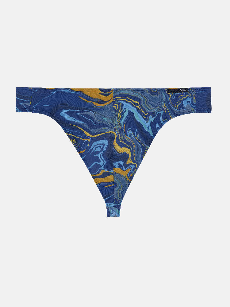 Hom Funky Styles G-String herenstring met smalle taille van blauwe microfiber met marmerprint