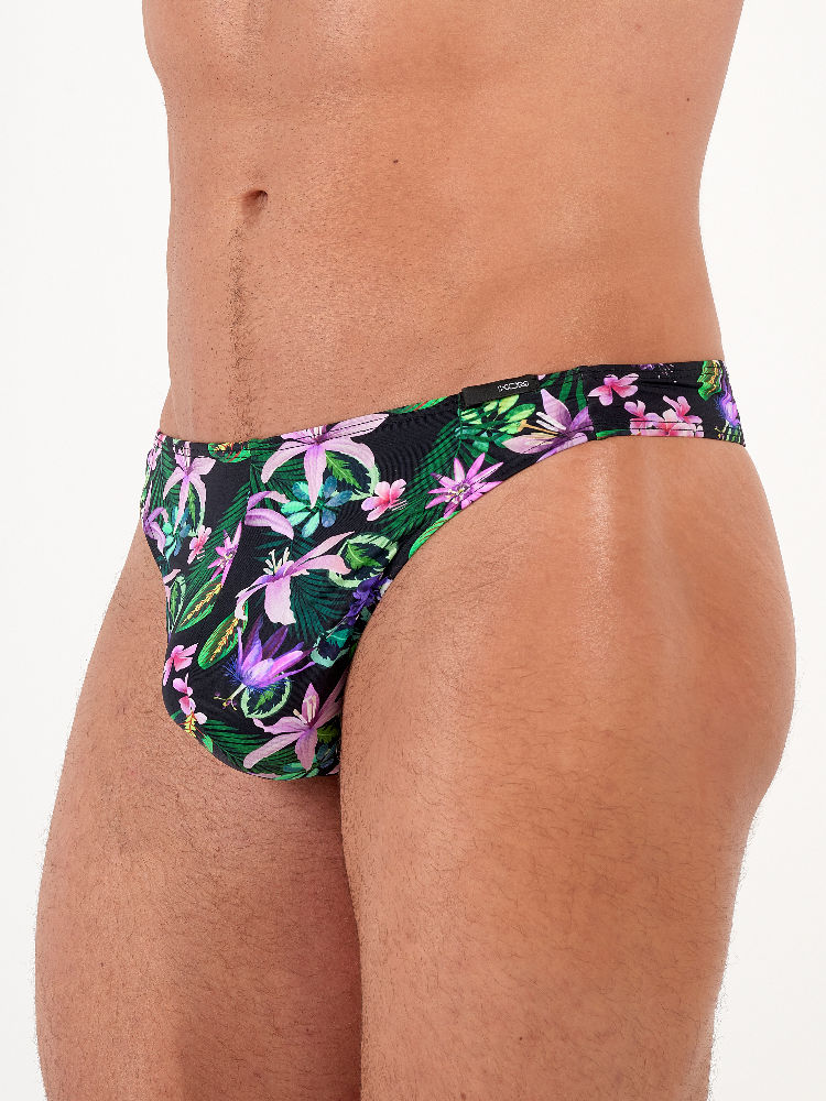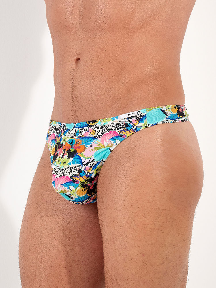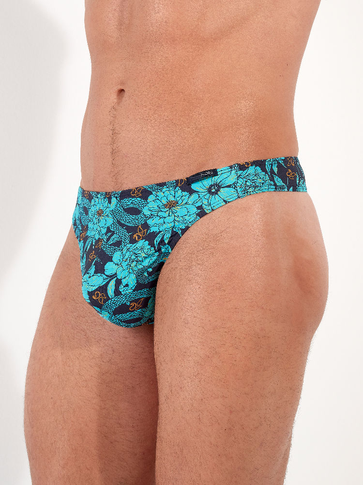 Hom Funky Styles G-String herenstring met smalle taille van lichtblauwe microfiber met bloemenprint