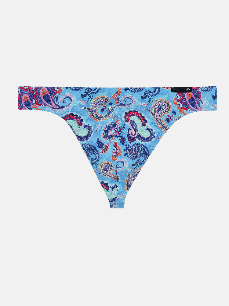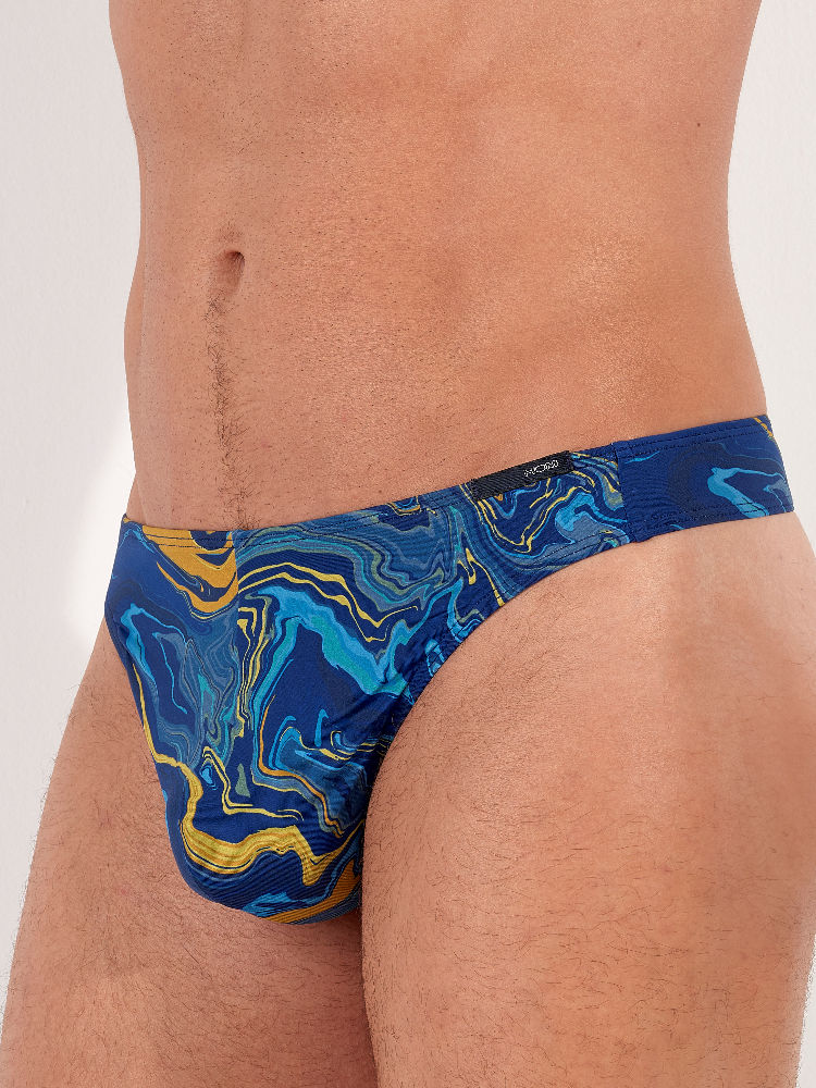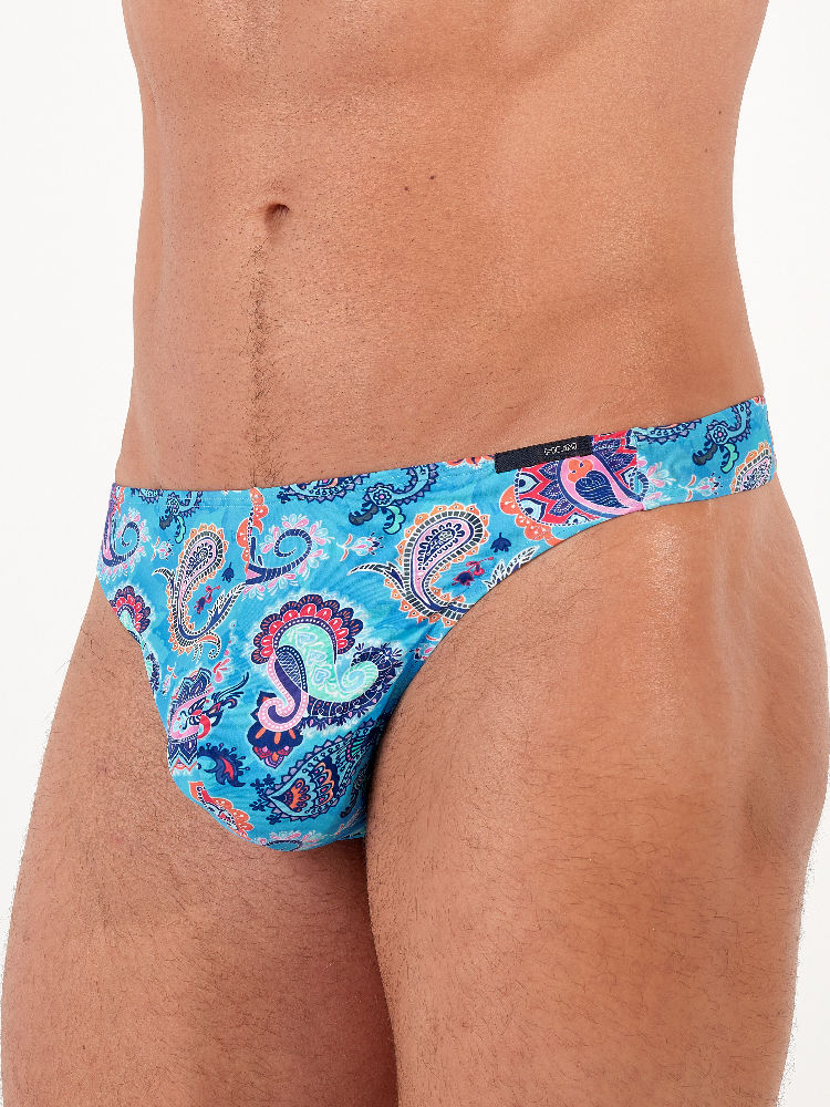 Ontdek de Hom Funky Styles collectie. Met de hoogwaardige kwaliteit en moderne pasvorm die je van Hom gewend bent, maar dan nét iets funkier! Voeg kleur, stijl en comfort toe aan je garderobe met de Hom Funky Styles G-String 403042 Navy Blue Print; een herenstring met smalle taille, gemaakt van soepele lichtblauwe microfiber met rijke paisleyprint.