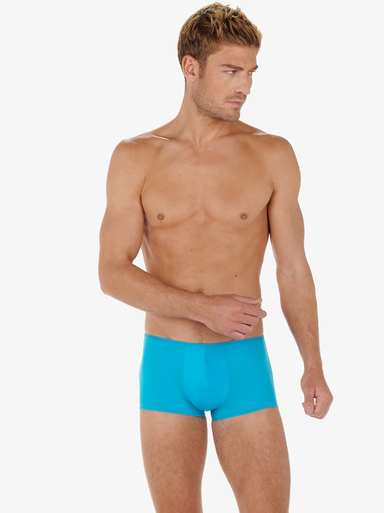 Speciaal voor alle shorty-dragers en Hom Plumes underwear fans; de Hom Plumes Trunk Turquoise 404755. Een korte strakke boxershort met smalle taille van dunne, lichtgewicht stretch in een frisse tint blauw. Ga jij voor stijl én comfort, dan mag deze Hom Plumes boxershorts zeker niet ontbreken in jouw ondergoedlade.