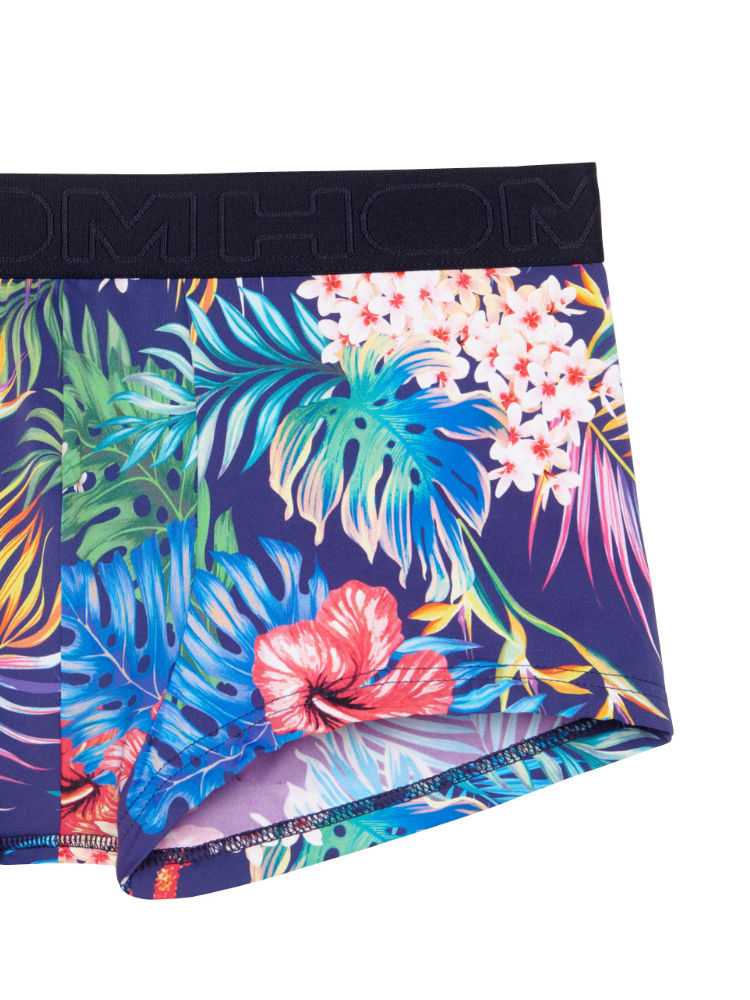 Sinds 1968 is het merk HOM al actief op de markt van ondergoed voor mannen. Deze trunk is van een superieure microfiber kwaliteit en uitgevoerd in donkerblauw met een multi color bloem design. Vrolijke motieven voor een lente-achtig gevoel. Natuurlijk zijn de HOM karakter-kenmerken weer volop verwerkt in deze boxer. Een keurige pouch met drie naden verwerkt en een elastische tailleband van een ultra zachte kwaliteit.