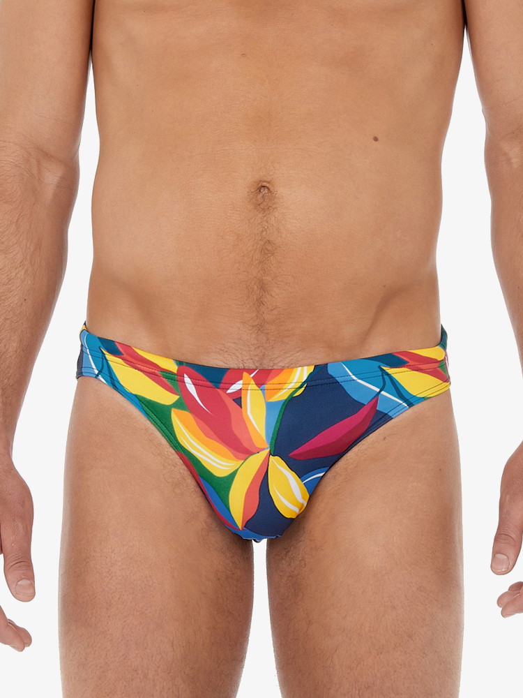 Ga jij binnenkort op reis naar tropische oorden? Kies je favoriete bestemming en neem deze kleurrijke Hom swim micro briefs Keran mee! Een strakke zwemslip met smalle taille en grafische bloemenprint.