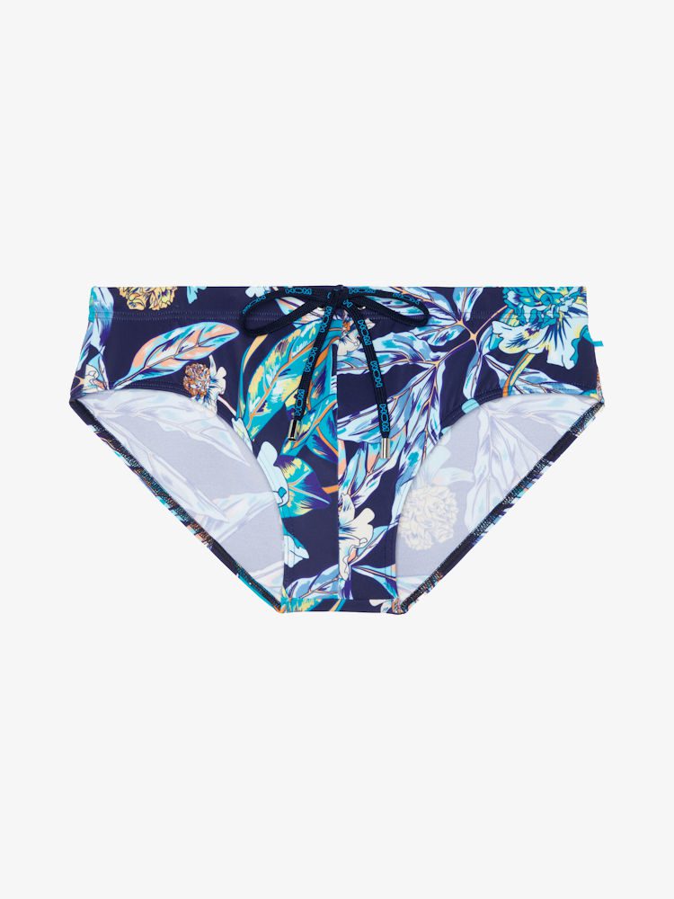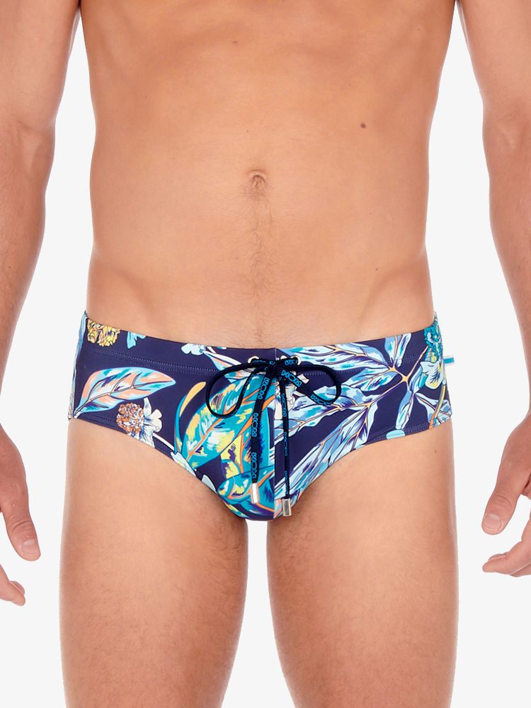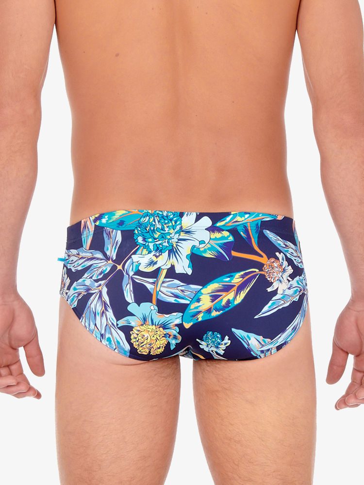 Deze Hom Swim Mini Briefs Paradiso uit de kleurrijke Hom Beachwear serie is een klassieke strakke zwembroek voor mannen met een moderne twist. Deze zwemslip is gemaakt van een mooie, zachte en sneldrogende stof en is afgezet met een elastische tailleband met koordsluiting. Een perfecte pasvorm met extra afwerking bij de benen voor een goede aansluiting. Voorzien van een klassieke voorkant zodat jij zelf bepaalt hoe je de zwembroek draagt. De Hom Swim Mini Briefs is een moderne, stijlvolle zwembroek met brede taille van hoogwaardige kwaliteit en staat garant voor jarenlang draagplezier. Uitgevoerd met een zomerse tropische print in donkerblauw met felle kleuren voor een warm gevoel.