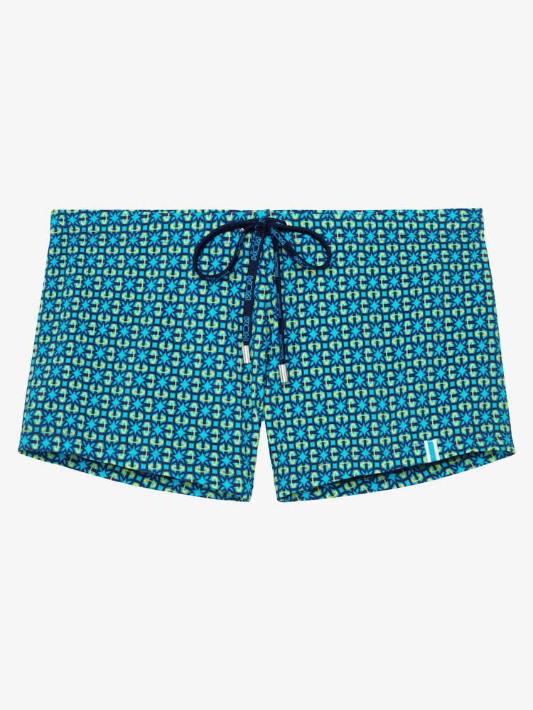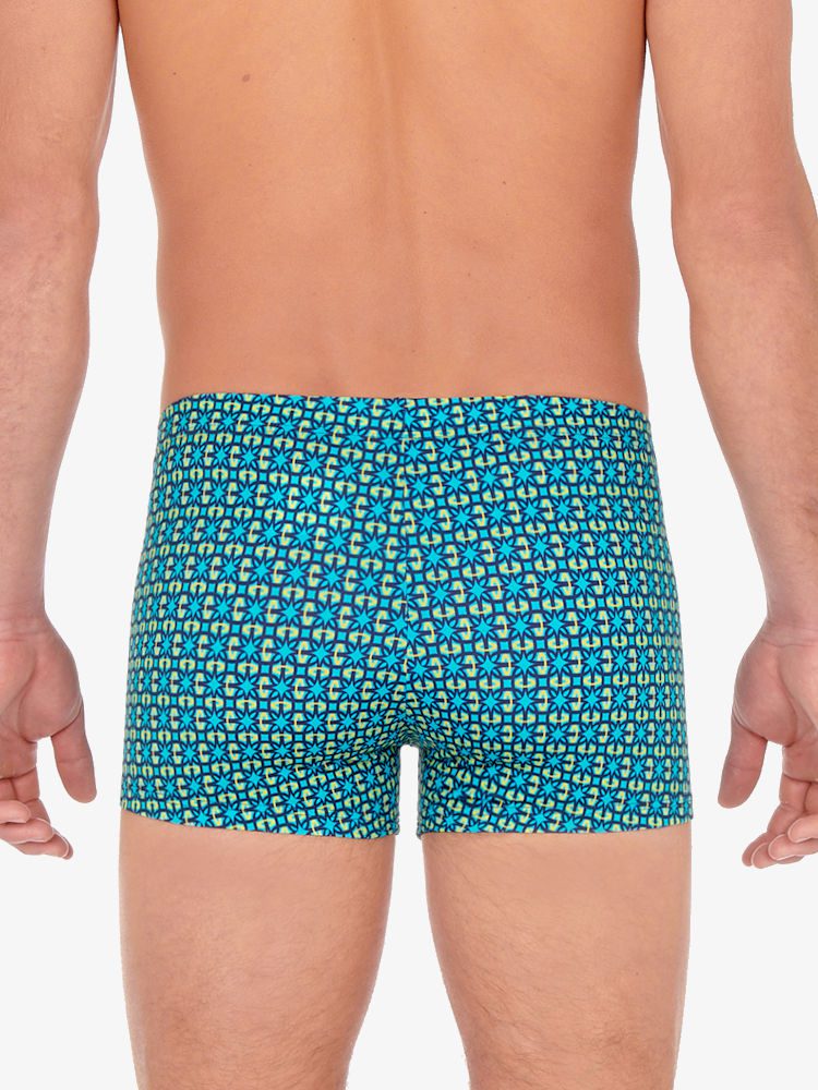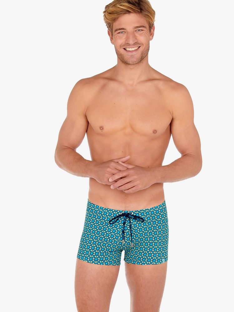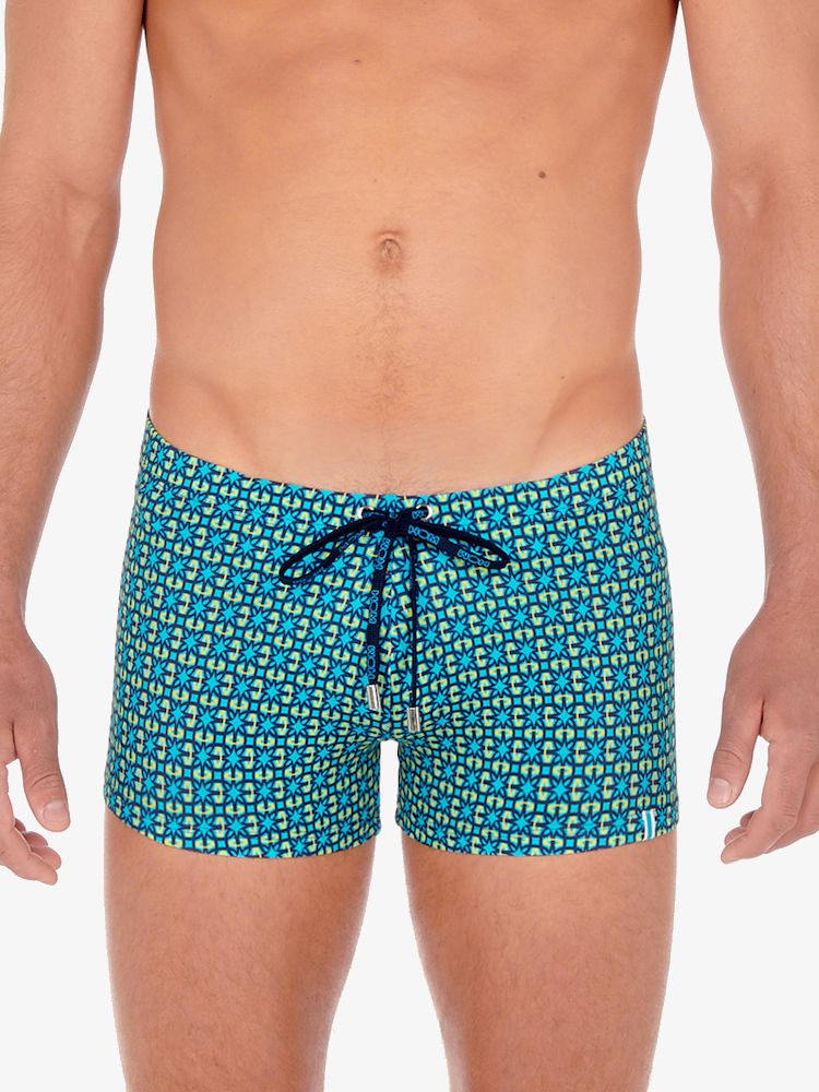 De Hom Swim Shorts Miramar 405675 Turquoise Print uit de vrolijke Hom Beachwear collectie is een klassieke strakke zwemshort voor mannen met een moderne twist.